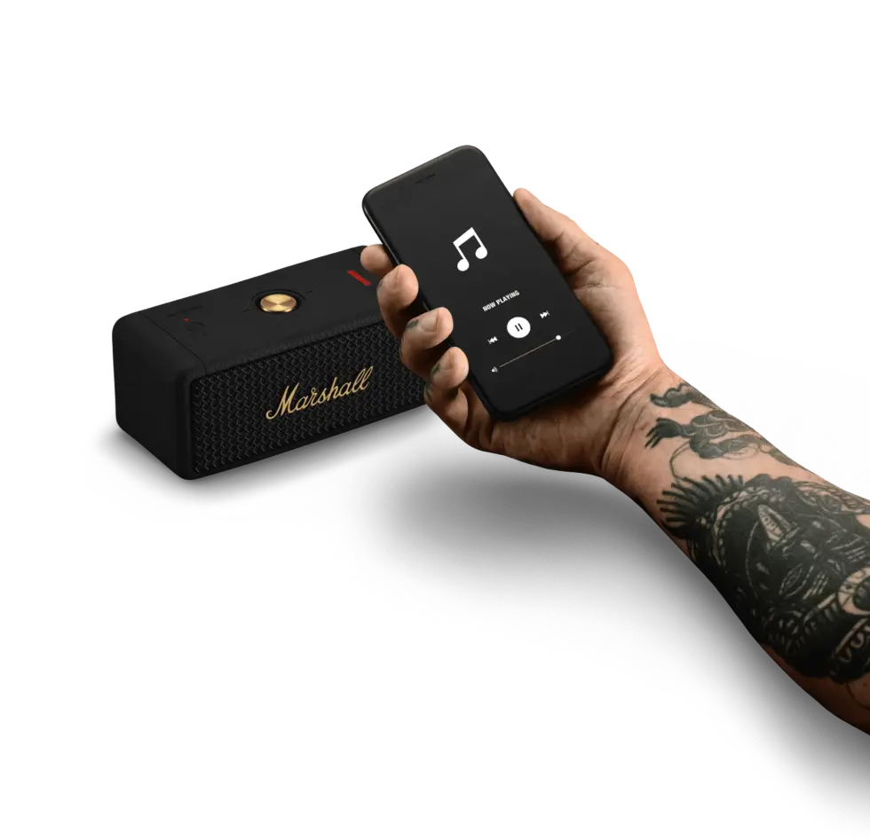 Both the Marshall Willen and the Marshall Emberton II speakers have Bluetooth v5.1 connectivity with a wireless range of up to 10 meters. You can set equalization presets when paired with its smartphone app. They are both equipped with a multi-directional control knob and are stackable if you own more than one.