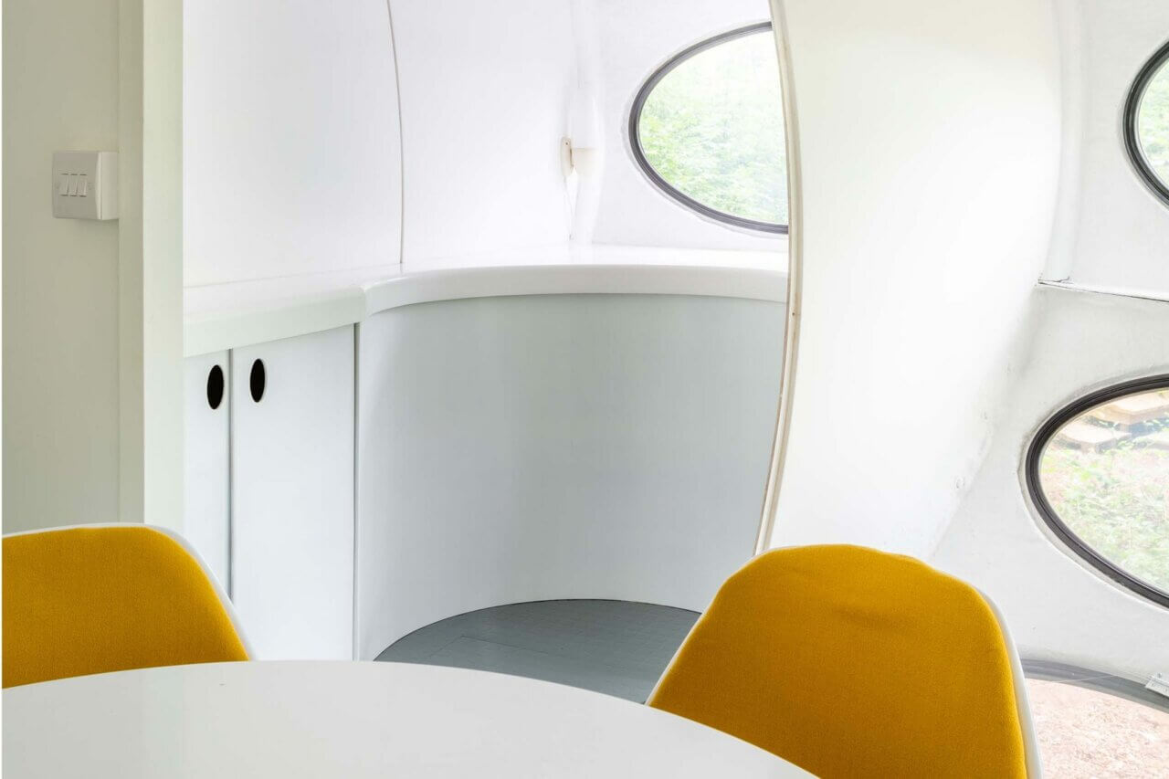 The Futuro Houses that stands in Marston Park is apparently one of 68 that are still in good condition. This unit, in particular, is a restoration by artist Craig Barnes and hails from South Africa. It looks exactly the way it should from the outside, while the interior now sports a more modern appeal.