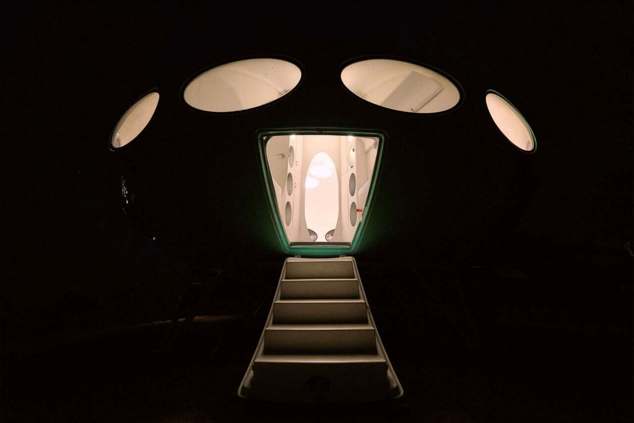 Accommodations include a double bed and an additional sleeping area enough to sleep up to four guests. The door opens to reveal stairs just like those on eyewitness accounts of UFOs. Sadly, no tractor beam action for your luggage here. Be sure to take photos at night when the lights inside turn it into a scene straight from a sci-fi movie. The Futuro House is probably the closest one can get to an actual sighting.