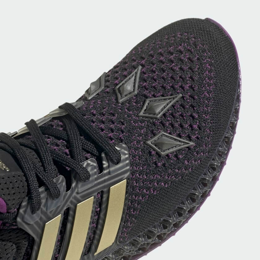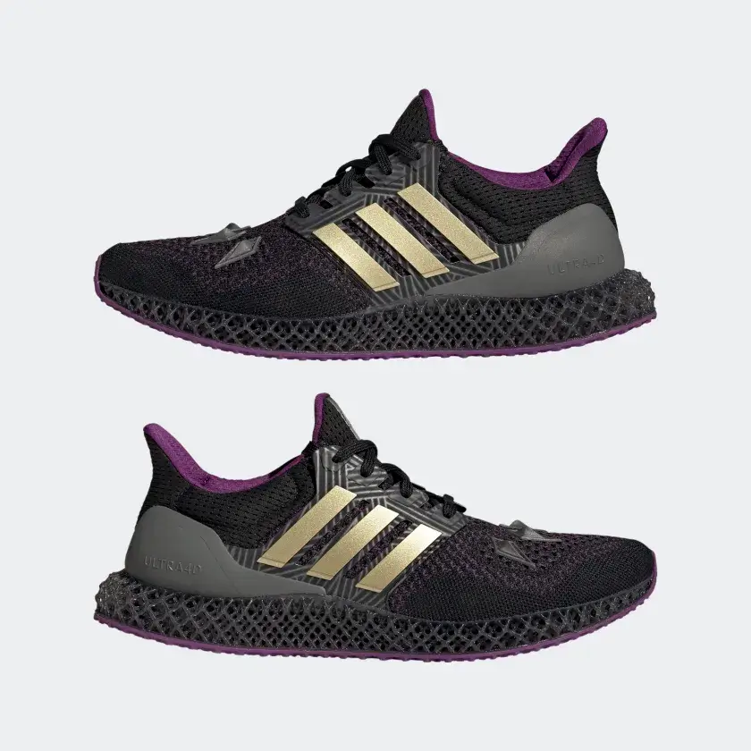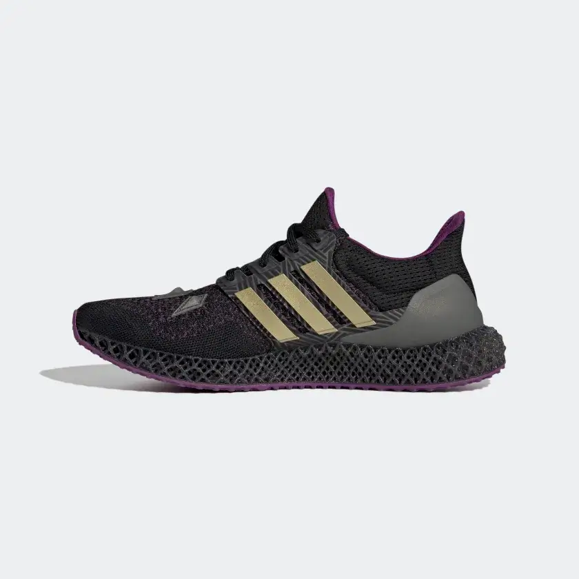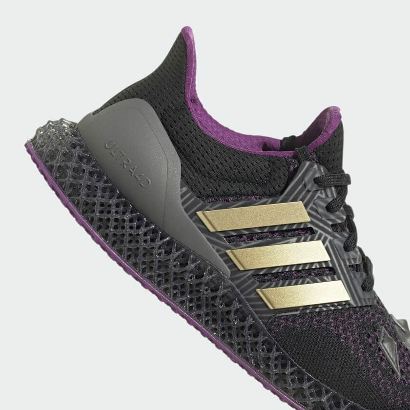 The golden tone is once again visible on the tongue tag’s Adidas branding. A deep purple inner lining peeks out from the collar and tongue. It comes with gray heel cage, a black 4D midsole, and a purple outsole. The Marvel Black Panther Ultra 4D will retail for $220.