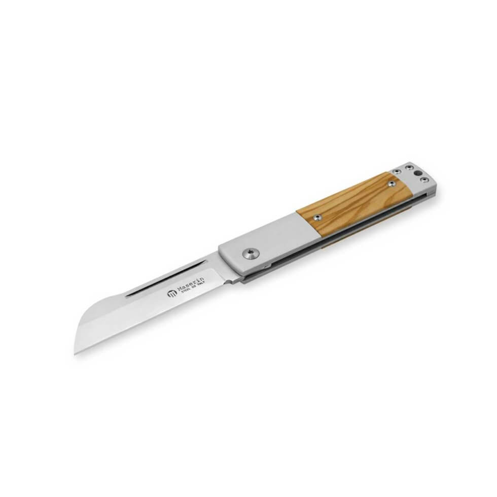 Meanwhile, Maserin’s In-Estro features a Micarta and anodized aluminum handle finished in satin. The scale is available in various colors including Black, Blue, Brown, Olive Tree, and Green. It also comes with a tip-up pocket clip and can be engraved.