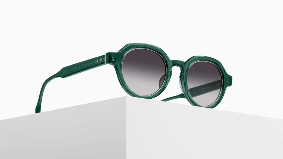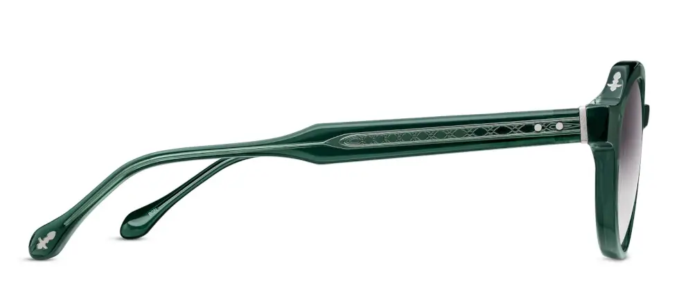 Meanwhile, titanium lines the inner rims, which hold cobalt blue lenses. Next in the For You Collection is the M1032. With its bottle green color, it is the more striking of the two. The designers are going for a transparent aesthetic with its hand-polished Japanese acetate frame and temples.