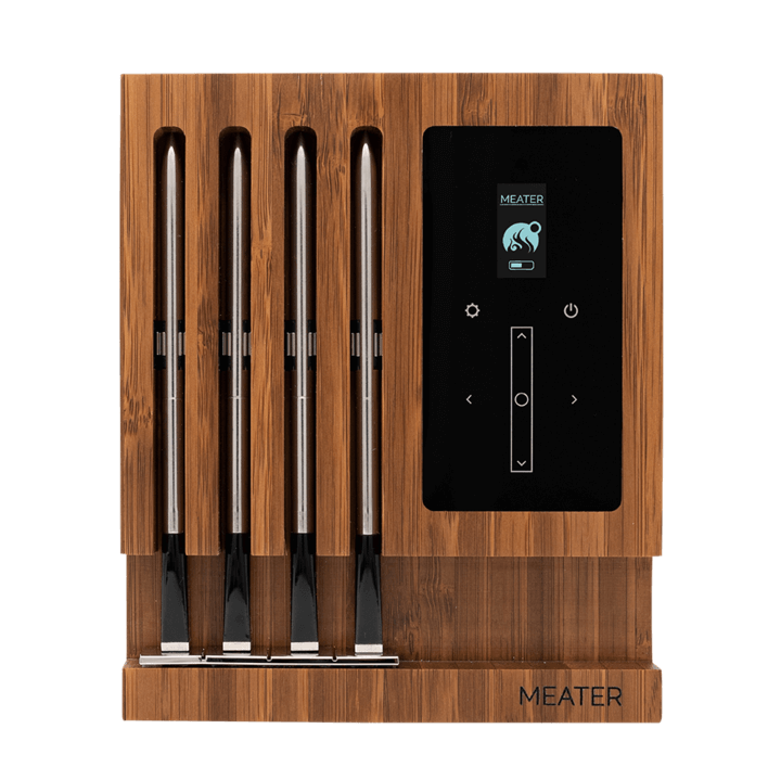 This is no ordinary chopping board although at first glance it may look like one. Its name also suggests a board solely dedicated to cutting, slicing, and chopping protein. On the contrary, it holds four meat probes that aid you in cooking delectable and perfectly grilled steaks. The probes are stainless steel and heat-resistant ceramic. Each has dual temperature sensors that simultaneously monitor internal meat temperature at a max of 212 °F and ambient /external temperature up to 527°F.