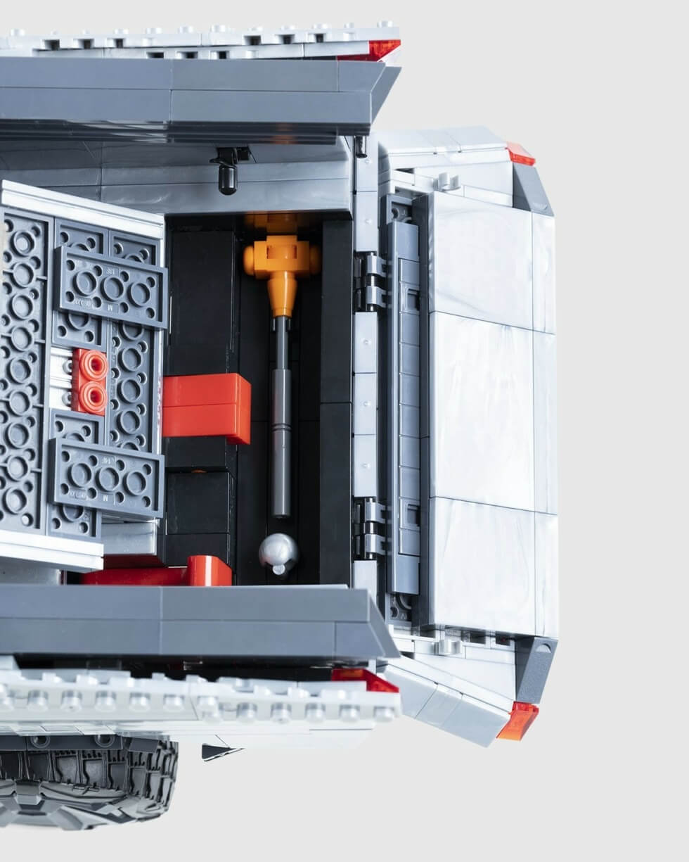 As an officially licensed product, you have a buildable model kit that reveals more about the machine. Think of it as a hands-on preview of sorts to learn more about its sophisticated functionalities. The articulation is top-notch with its folding tailgate, adjustable suspension, detachable tonneau cover, and more.