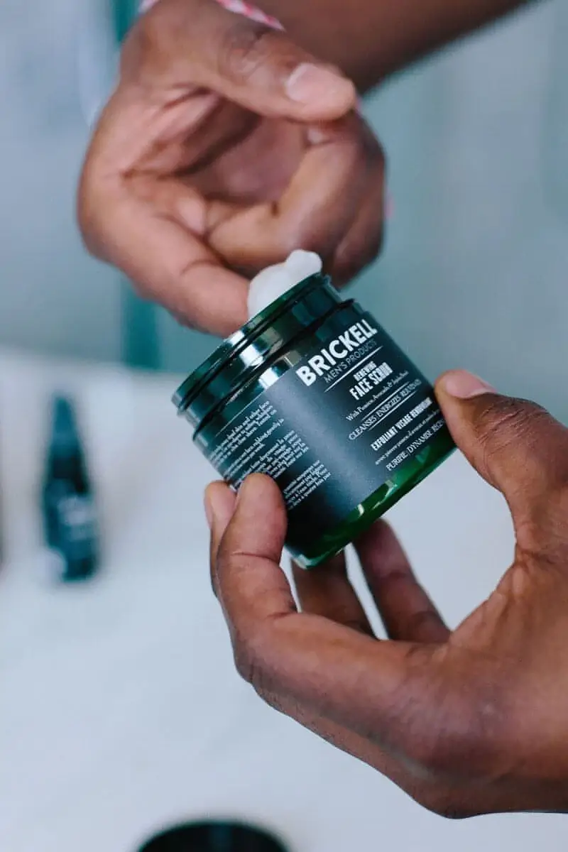 Brickell Men’s Product’s Men’s Daily Advanced Face Care Routine I consists of a Clarifying Gel Face Wash you use morning and night to remove impurities, grime, and oil. Then you follow it up with the Renewing Face Scrub for exfoliation. It helps to unclog pores and remove dead skin cells and facial impurities. The last step is the Daily Essential Face Moisturizer which hydrates, energizes, and protects the face without clogging the pores.