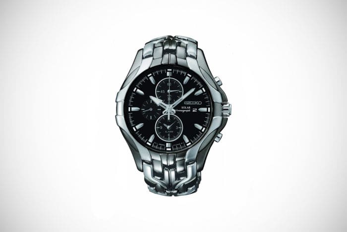 We understand, don’t worry, that sometimes those elegant and slimline leather straps aren’t suited to everyone’s personal style. So, if you like a whole lot of metal and we mean metallic-looking metal, then you should consider something like the Excelsior Black Ion Finish Solar Chronograph. Made by master timepiece manufacturers Seiko, we have to say this is an extremely cool watch.