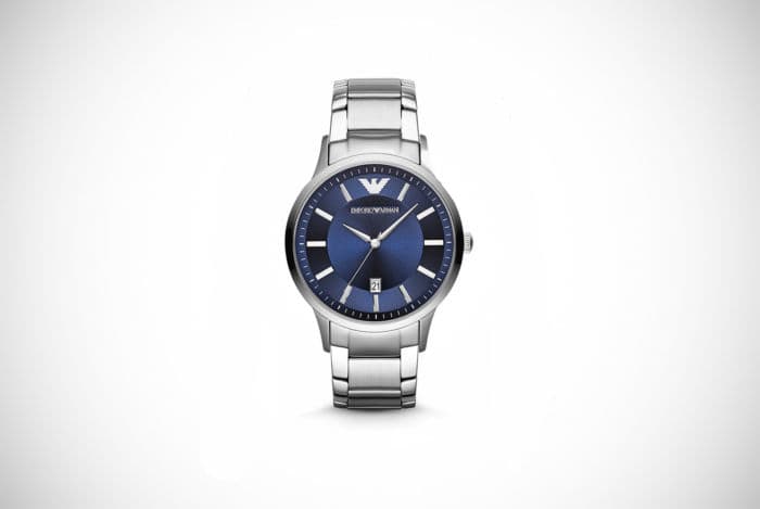 First dress watch we want to draw your attention to is this rather beautiful timepiece from Emporio Armani. It features an extensive amount of stainless-steel, so it has a truly masculine look. It also feels substantial and that it won’t break easily. The case is a rather generous diameter of 43mm and there’s index hour markers, easy-to-see hands and a small window for the date.