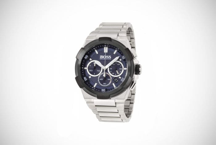 As well as the black-ion steel, there’s also a blue dial face that contrasts impressively with the silver tones of the stainless-steel. Boss is normally seen as a sign of quality and with this watch, that’s the case.