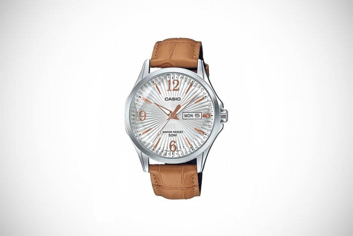 We’ve featured Fossil watches in our minimalist watches guide. The Nate dress watch is made for all you that like to have something a bit rugged but smart all the same. It has a very aesthetically appealing construction and takes a lot of inspiration from military-style watches for its design. So, if you felt some of the watches aren’t masculine enough, this will appease that need to feel manly.