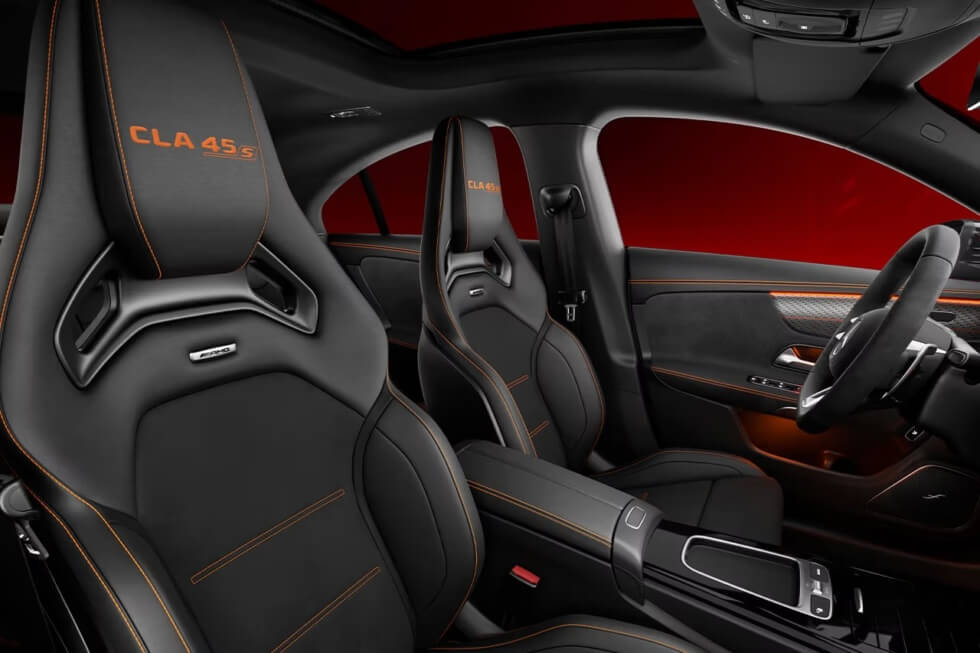Every Mercedes-AMG CLA 45 S “Edition 1″ flaunts orange accents throughout its exterior. In contrast to the standard version, it’s outfitted with an AMG Aerodynamics Package and AMG Night Package Plus which equates to a larger rear spoiler and front splitter.