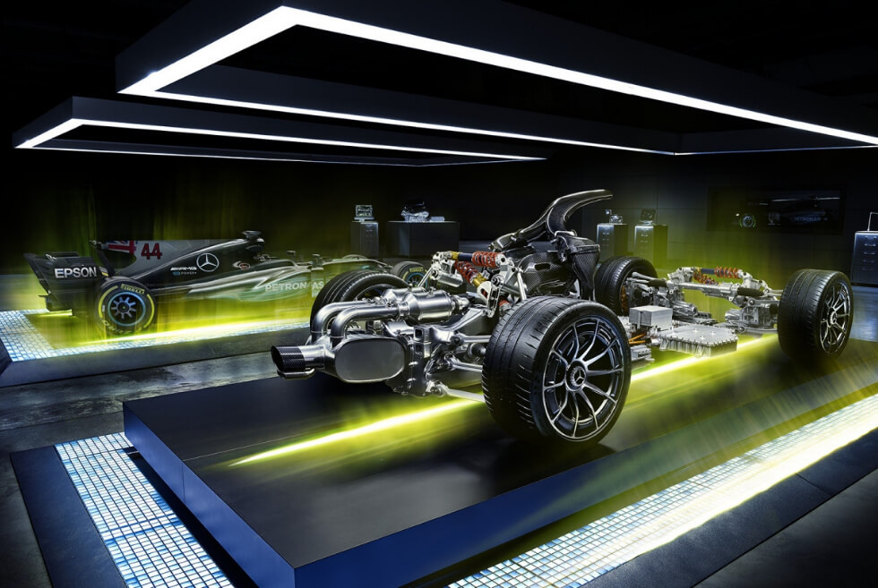 Hamilton was the face behind the launch for a good reason. Mercedes-AMG is borrowing technology from its Formula 1 division for this machine. The hypercar will pack a 1.6-liter turbocharged V6 engine augmented with a powerful electric motor. The manufacturer says output should be north of 1,000 horsepower.