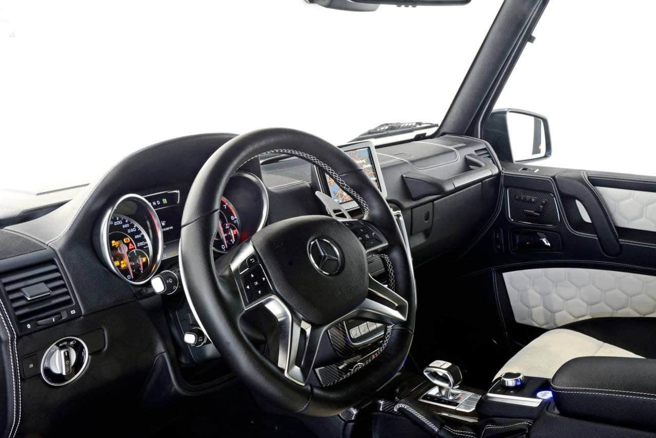 To match the power upgrades, the G63 also received a cool wide-body kit, with impressive new fenders, a vented engine hood, new front and rear bumpers, and smoked headlights. The project was then finished off with a plush interior featuring soft Nappa leather seats – because rough terrains should be experienced in uncompromising comfort.