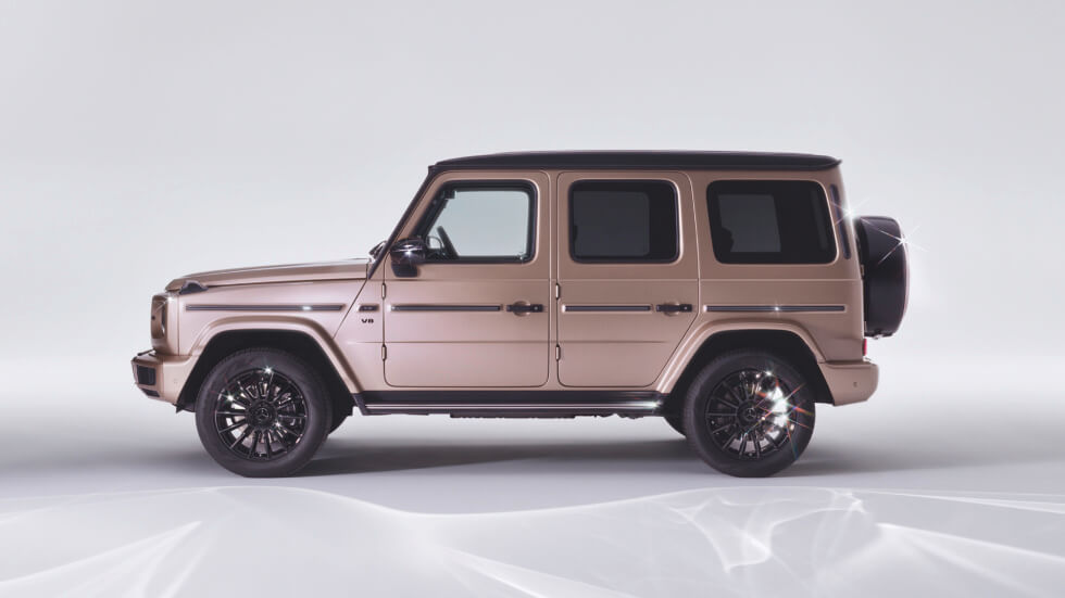 As we hinted at earlier, the G-Class “Stronger than Diamonds” Edition is dubbed as such courtesy of the 0.25-carat diamonds embedded within the stainless steel door locking pins. Moreover, the door handles are likewise adorned with an embossed diamond emblem. The manufacturer continues the motif inside as rosé stitching contrasts the black Nappa leather upholstery.