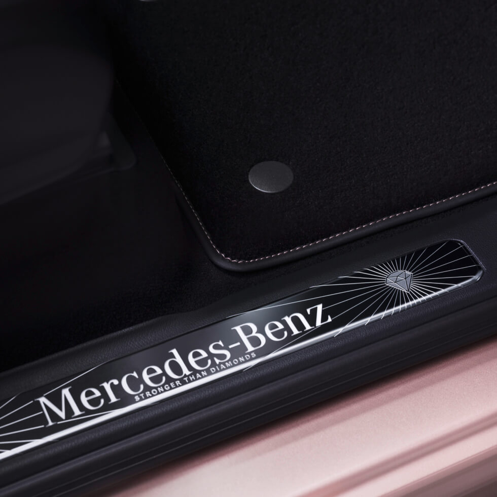 Exclusive to the SUV are special branding elements in stainless steel found on the door sills and grab handles. To guarantee the stones used by Mercedes-Benz are sourced ethically, each G-Class “Stronger than Diamonds” Edition ships with a Responsible Jewelry Council (RJC) certificate. Last, but not least, is the key fob with a silver medallion decorated with a diamond.