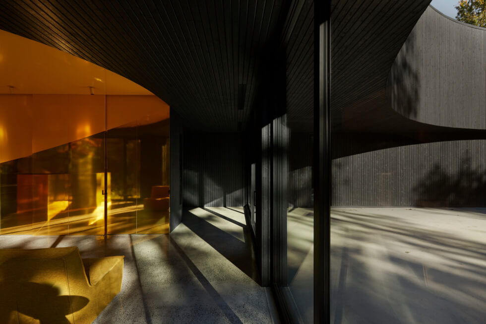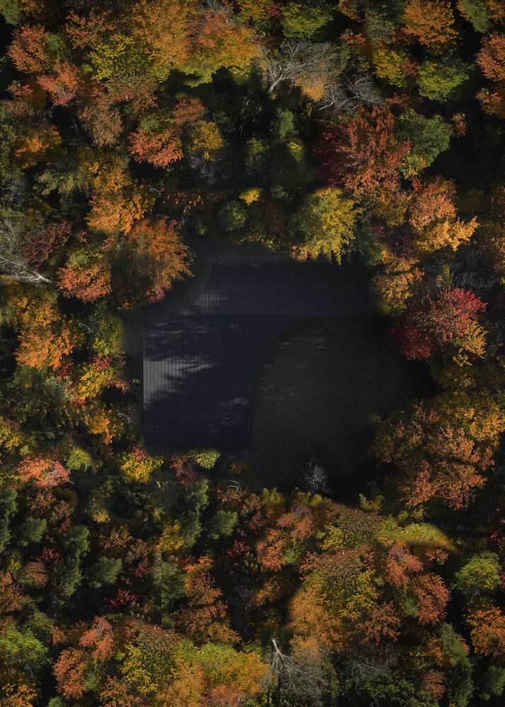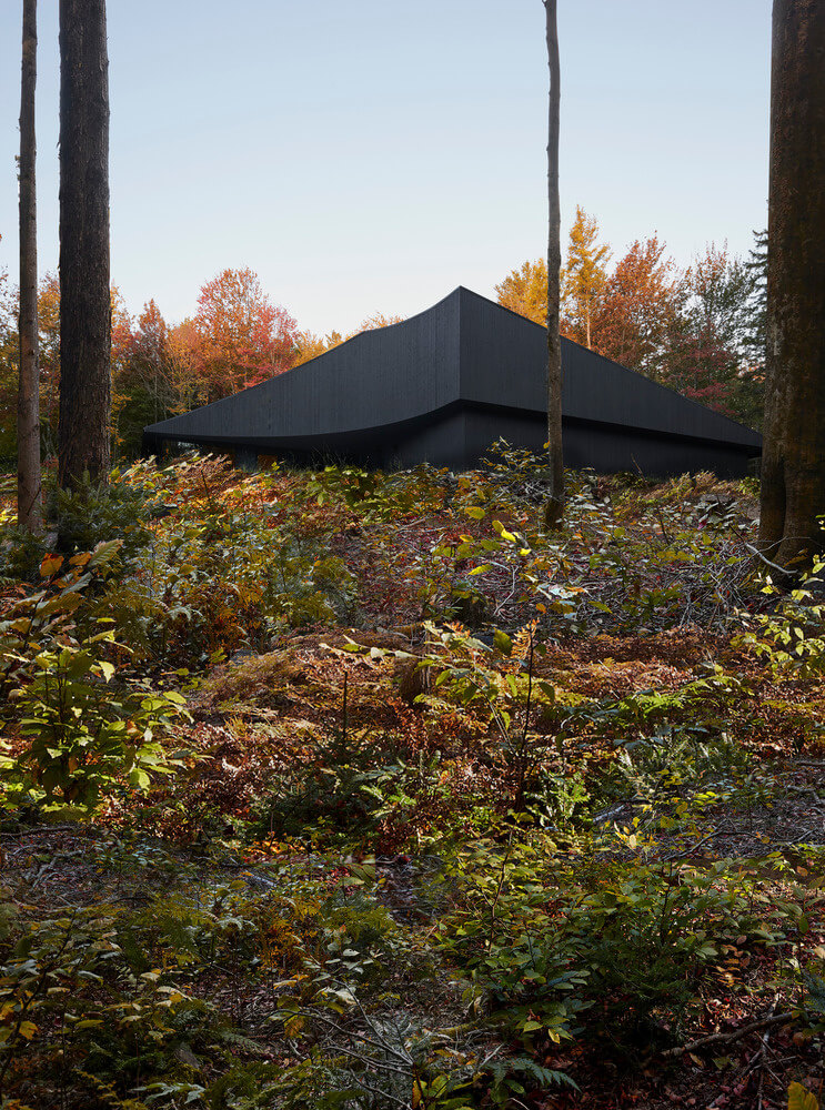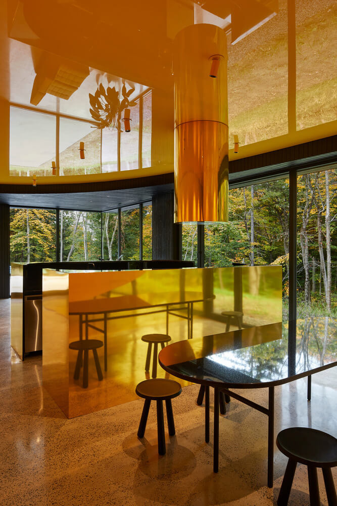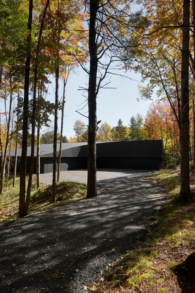Penned by the team at Jean Verville Architecte, we have this discrete yet interesting home in Montreal, Canada. The clients are what many would describe as “two admirable eccentrics” which hints at their unique tastes in aesthetics. Both are fans of Italian design and art from the ‘80s and want to live in the middle of the woods.