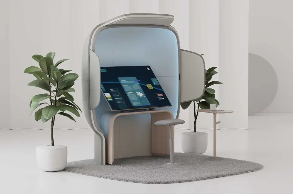 It is unlike most office pods introduced as of late. Those that look like a cocoon and with doors for ultimate seclusion. This idea from Microsoft comes with openings on both sides and just enough privacy covers so as not to make you feel suffocated inside. Microsoft’s Flowspace also comes with a premium grey felt finish for a luxurious feel.