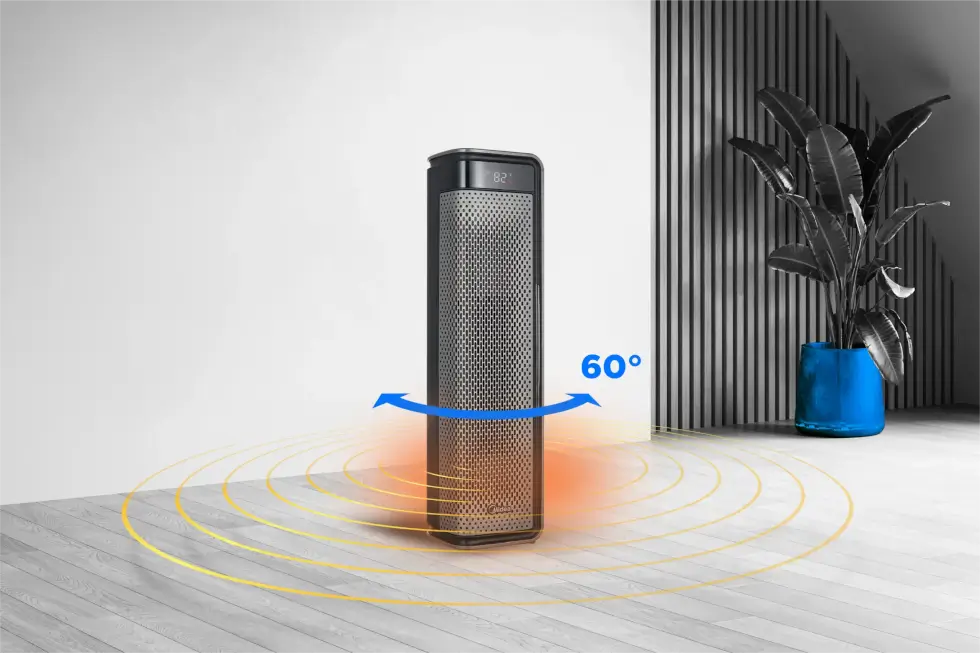 No matter its placement, Midea’s Dual-Flex Safe Space Heater offers consistent warmth to keep you feeling toasty. It features an internal 60° oscillation that evenly distributes heat across the entire room.