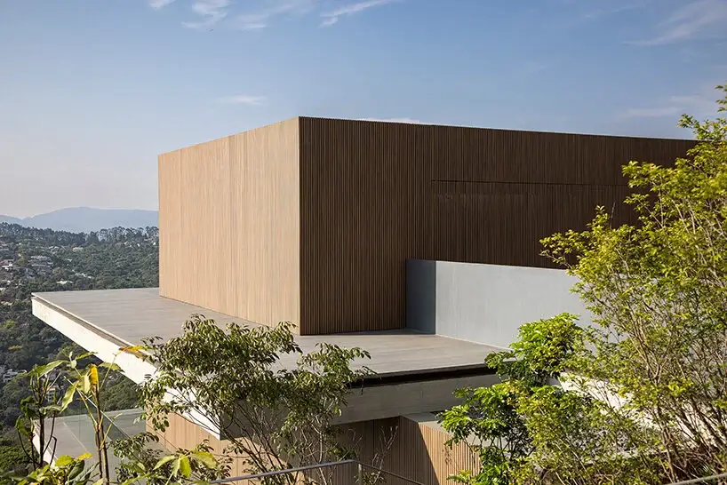 Although the site this residence stands on also features verdant greenery, it promises even more spectacular sights. Unlike the Casa Azul which nestles within a Jungle, the Minas Gerais mountains of Brazil deliver their own scenic backdrop. The blueprint stacks several volumes, which are then supported by concrete pillars.