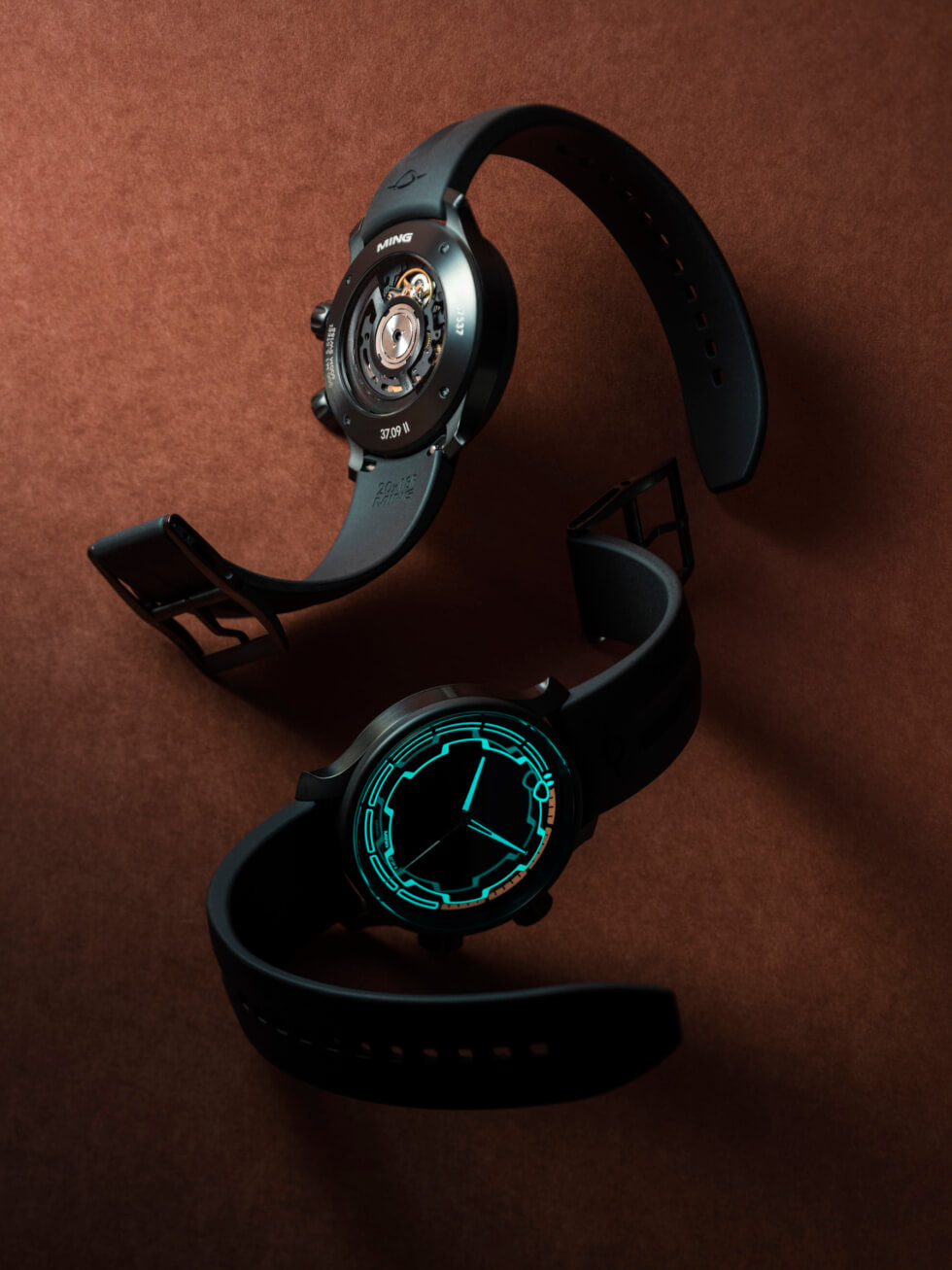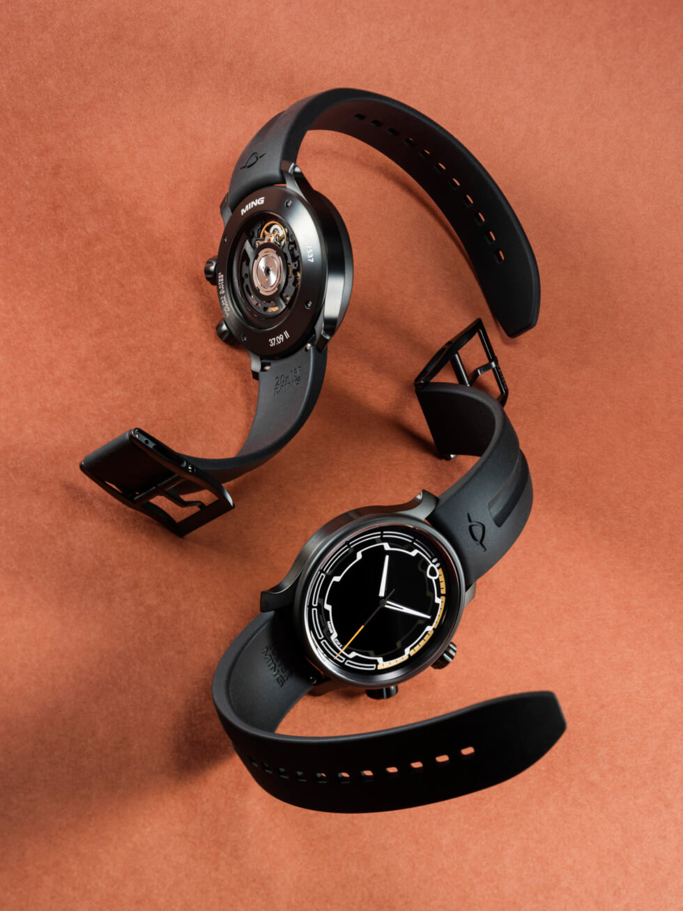Meanwhile, each 37.09 Uni sports a black dial with an internal rotating diving scale bezel. As for the hour markers, MING is printing it on the rear of the top sapphire crystal. Super-LumiNova X1 lume coats these along with the hands for visibility in the dark. Lastly, the watch includes an FKM rubber strap with an adjustable flying blade tuck buckle closure.