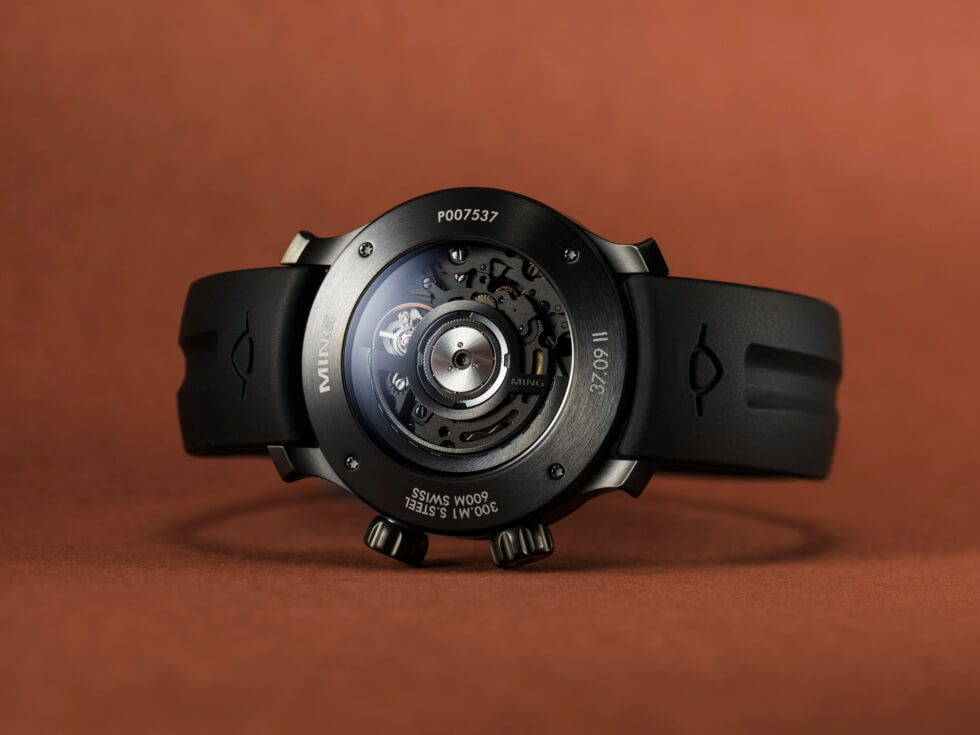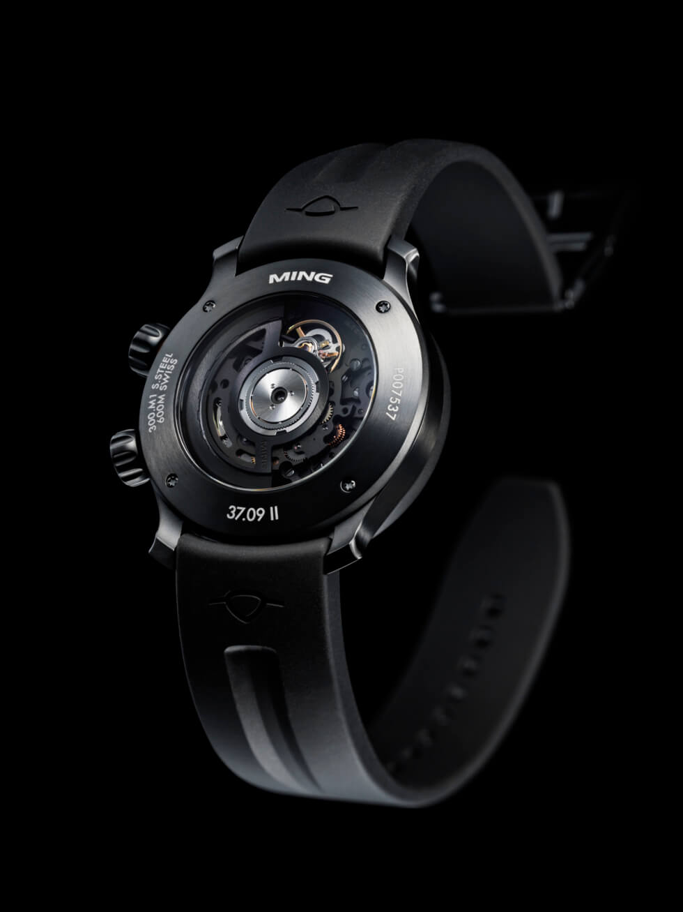 In other words, MING has engineered a stylish yet remarkably tough timekeeping instrument ideal for challenging escapades. Matching the understated theme is its Sellita for MING SW300.M1 self-winding caliber with skeleton bridges and rotor in an Anthracite tone. Additional circular brushed finishes further enhance the look of the components.