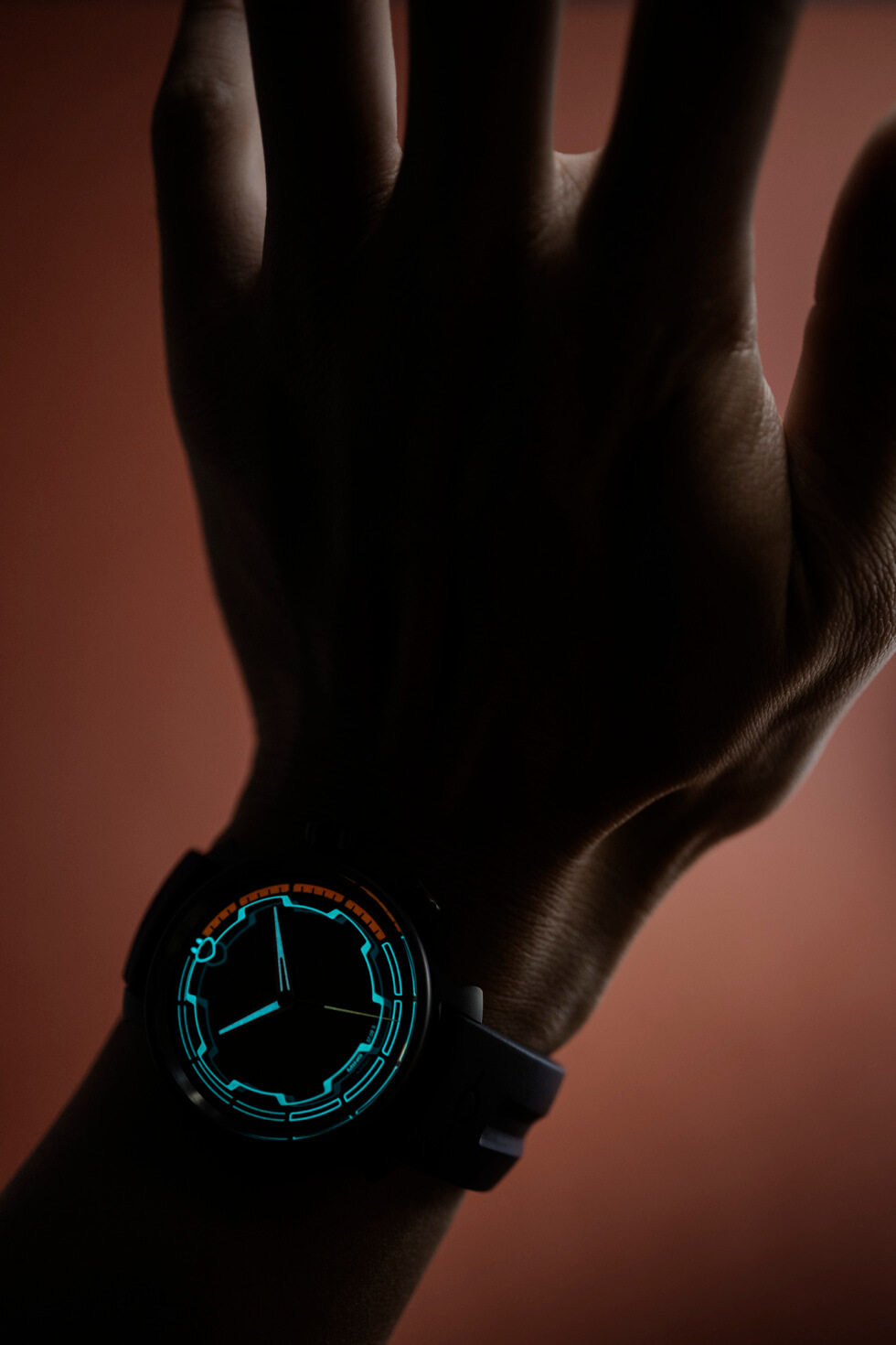 The case measures 38 mm x 12.8 mm x 44.5 mm and is fashioned from 316L stainless steel. A domed sapphire crystal with anti-reflective treatment on both sides for excellent visibility even under direct sunlight. A transparent window likewise finds its way to the exhibition case back. The 37.09 Uni is anything but delicate given it’s completely water-resistant up to 1,970 feet.