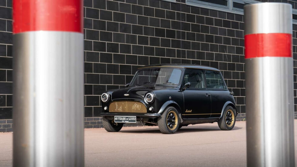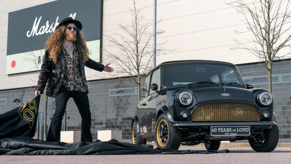 Mini Remastered Marshall Edition.A new addition to our list of odd yet cool collaborations is this compact car from David Brown Automotive. They’re calling it the Mini Remastered Marshall Edition – a stylish restomod celebrating the 60th birthday of the Milton Keynes, England-based audio company. As with most commemorative projects, this production run will see only 60 examples available for purchase.