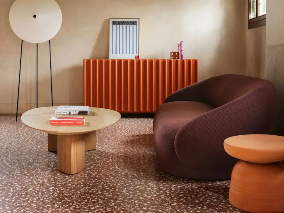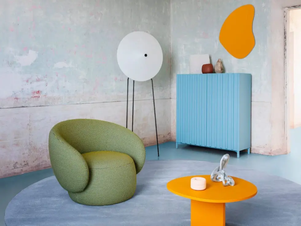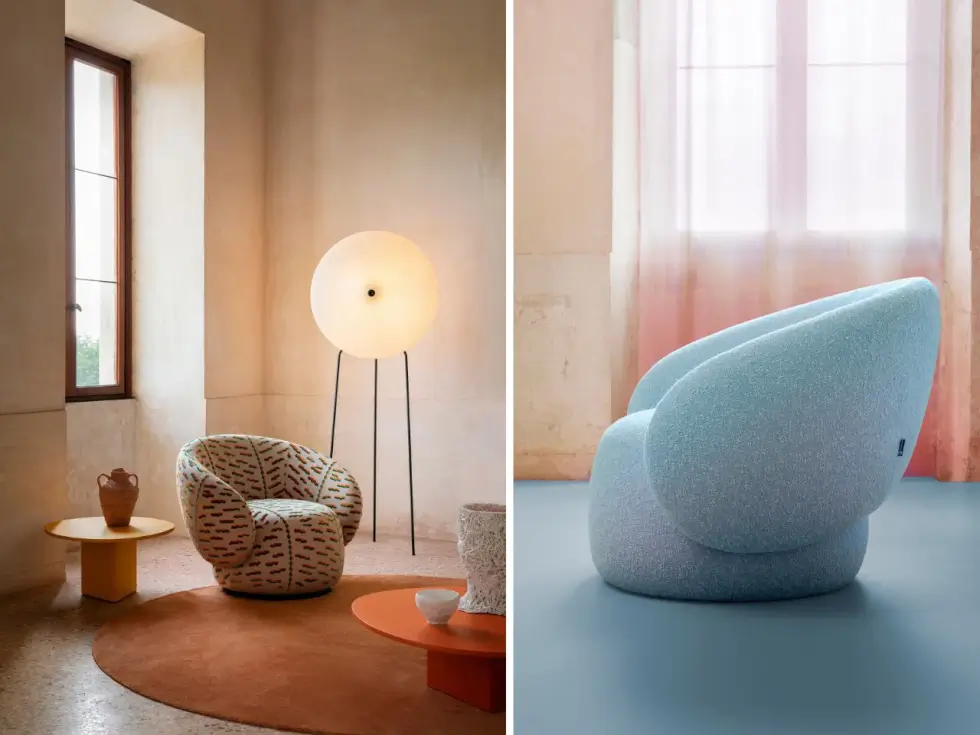 Moreover, there’s the Pouf, which mirrors the curvaceous form to ensure every element provides the same soft sculptural quality. The Nebulone Armchair in the Nebula Collection features a rounded and organic shape. Its curved seat and backrest beckons for a welcoming rest in a cocoon-like embrace.
