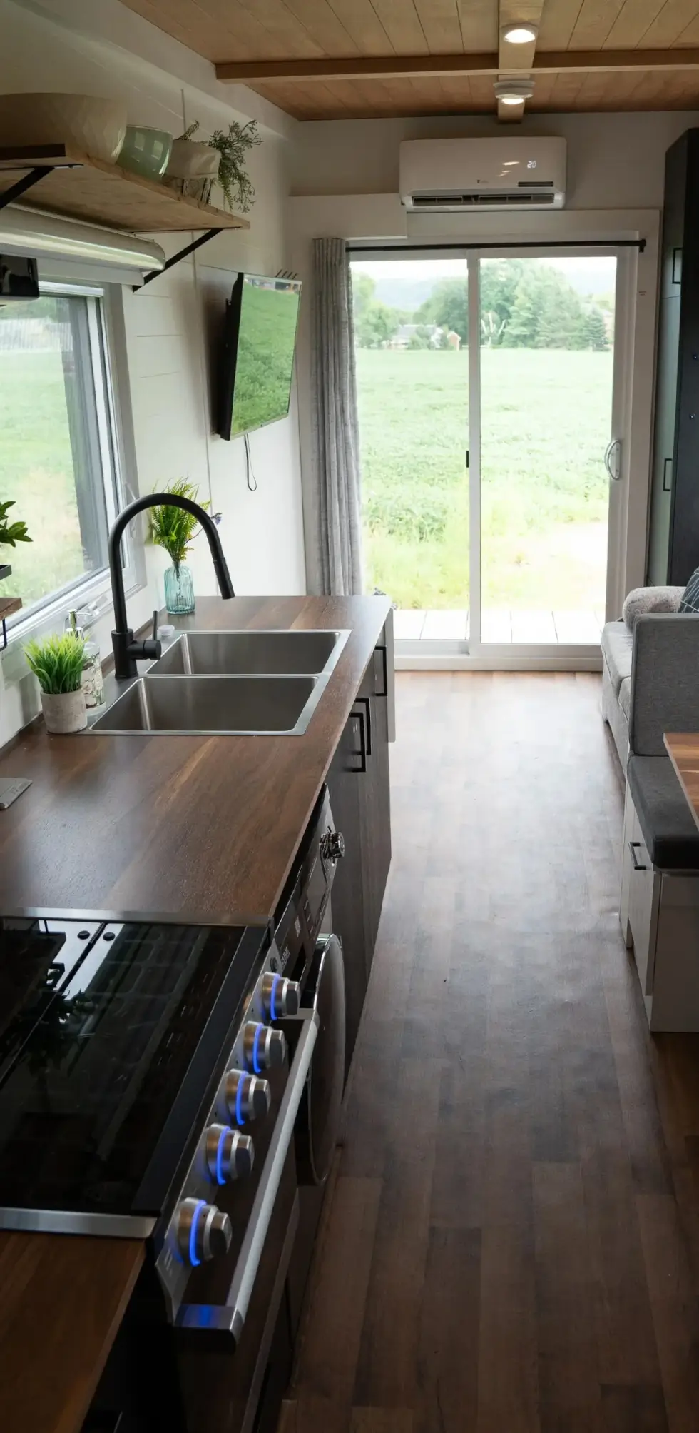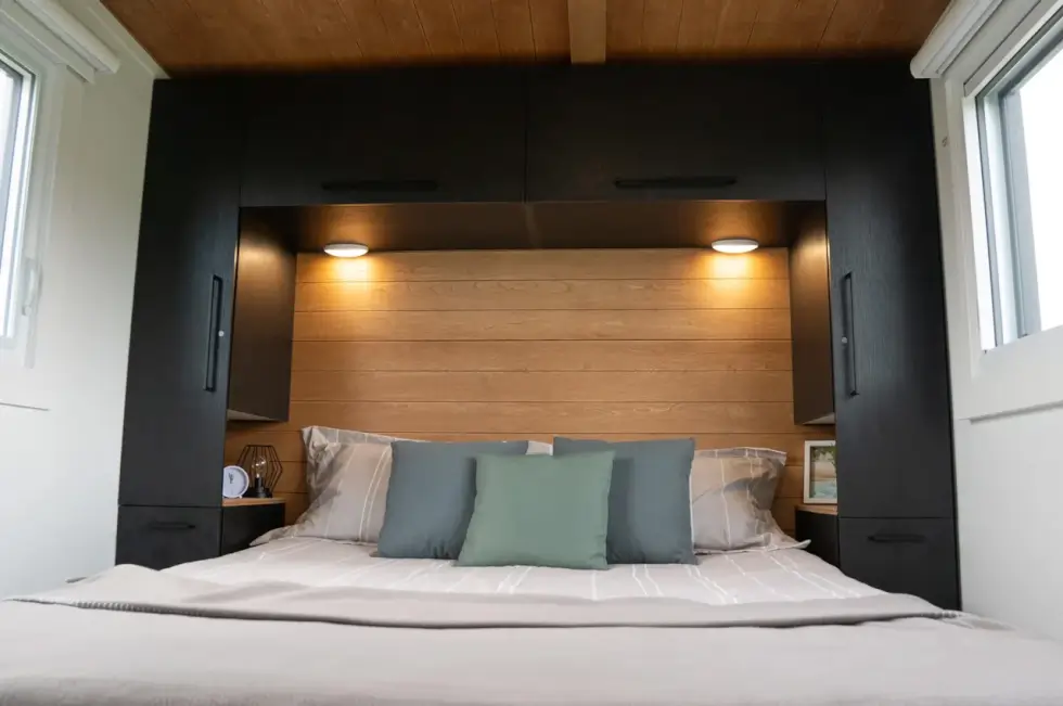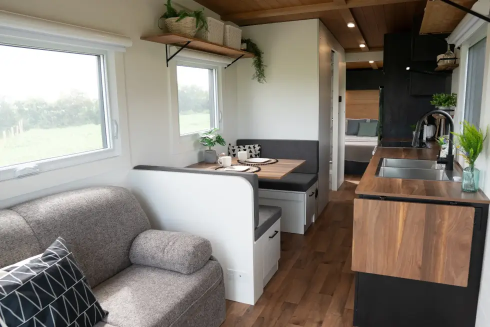 Minimaliste’s Nomad 30 tiny house offers 30ft of all-season off-grid living with its tough and durable construction. It features a compact yet optimized interior layout finished in warm hues and furnished for a comfortable and cozy living experience.