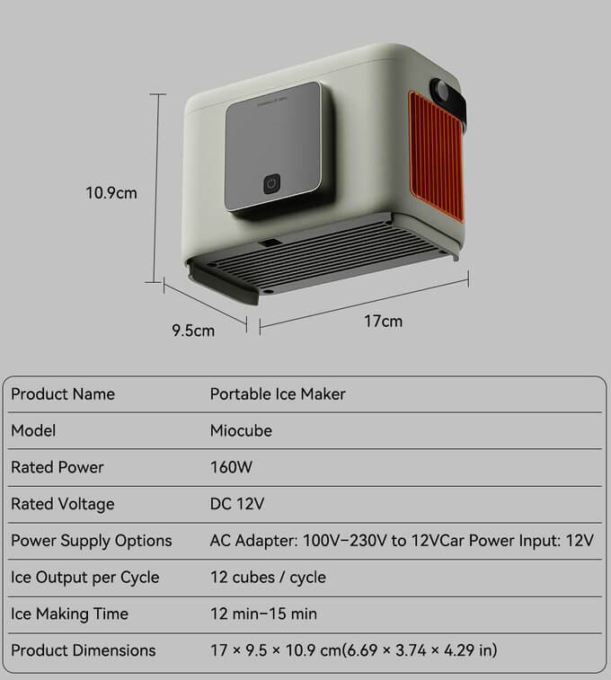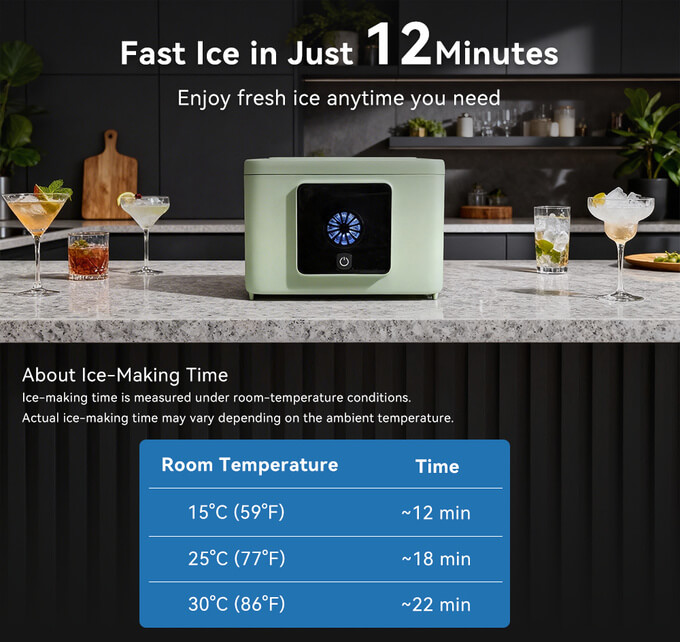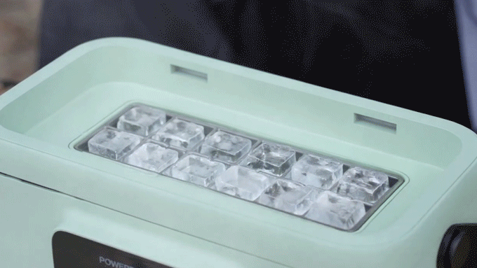 This device seamlessly blends retro-chic aesthetic and high-quality performance in a compact and portable form, designed for adventures. It offers both speed and quantity, delivering 12 perfectly shaped ice cubes in just 12 minutes.