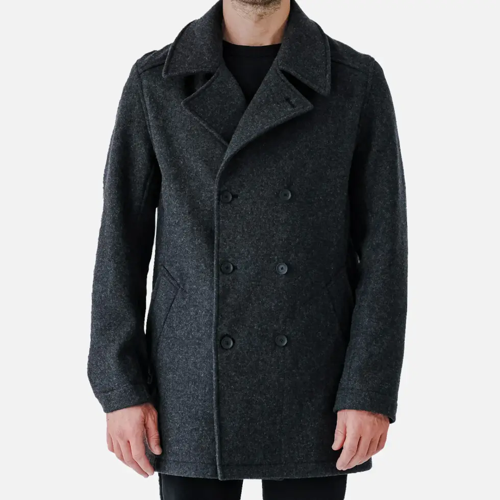 Mission Workshop’s Westward advanced peacoat strikes the balance between refined style and functionality. It offers excellent protection in any weather and resistance to dirt in a sleek and tailored silhouette.