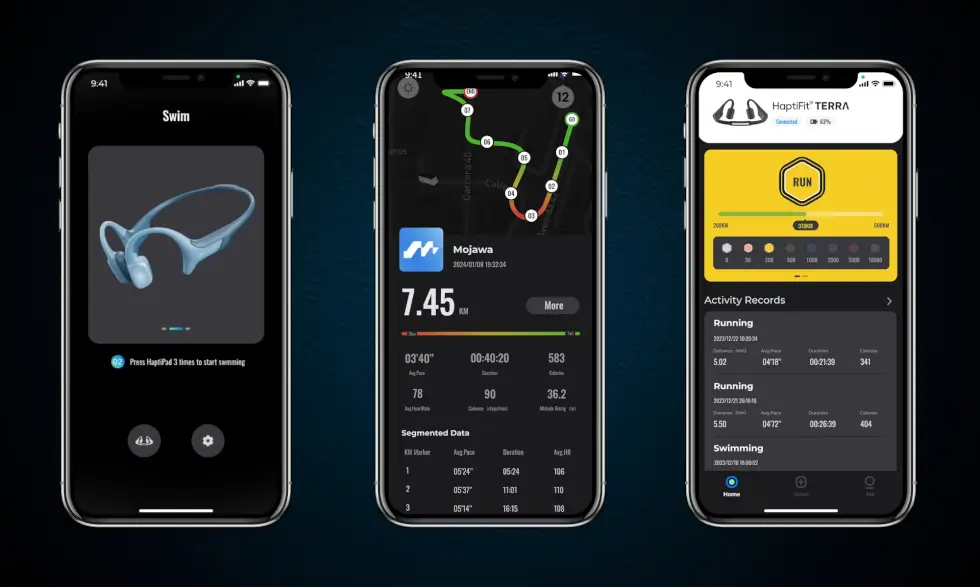 It also generates haptic feedback for tactile sensations which enhance your interaction. With the companion app, users can then view insights on what they need to improve. It uses Bluetooth connectivity to stream music from your smartphone but also comes with 32 GB of internal storage for your MP3s. Mojawa endows the HapFit Terra with robust IP68 protection to withstand all types of moisture.