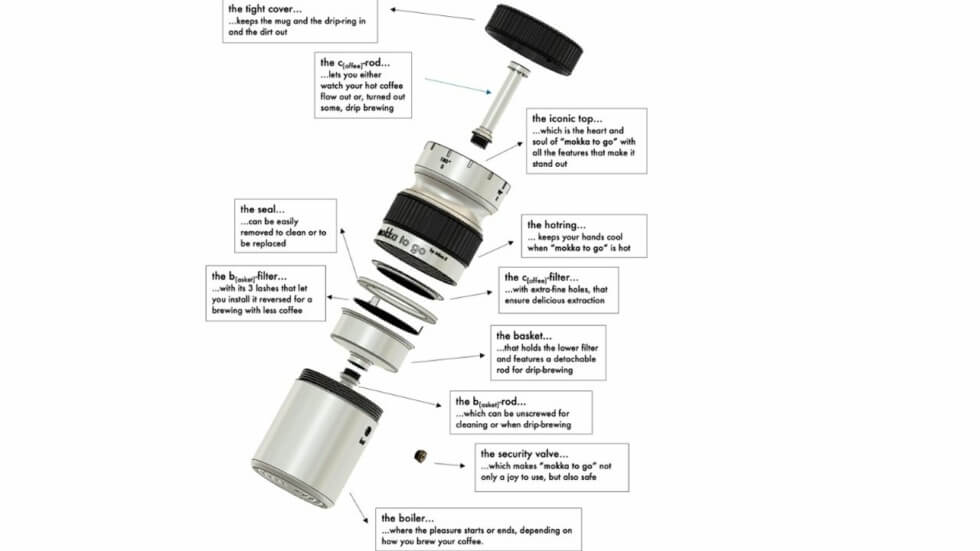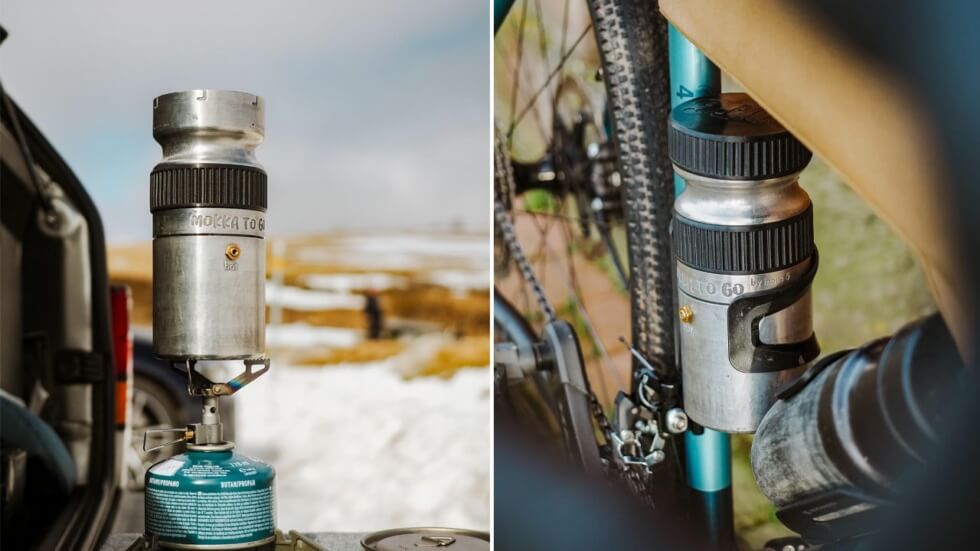 Mokka To Go offers the ultimate portability for the outdoor explorer. It mimics the traditional function of a Moka Pot, but built light, compact, and able to adapt to the rough and tumble lifestyle.