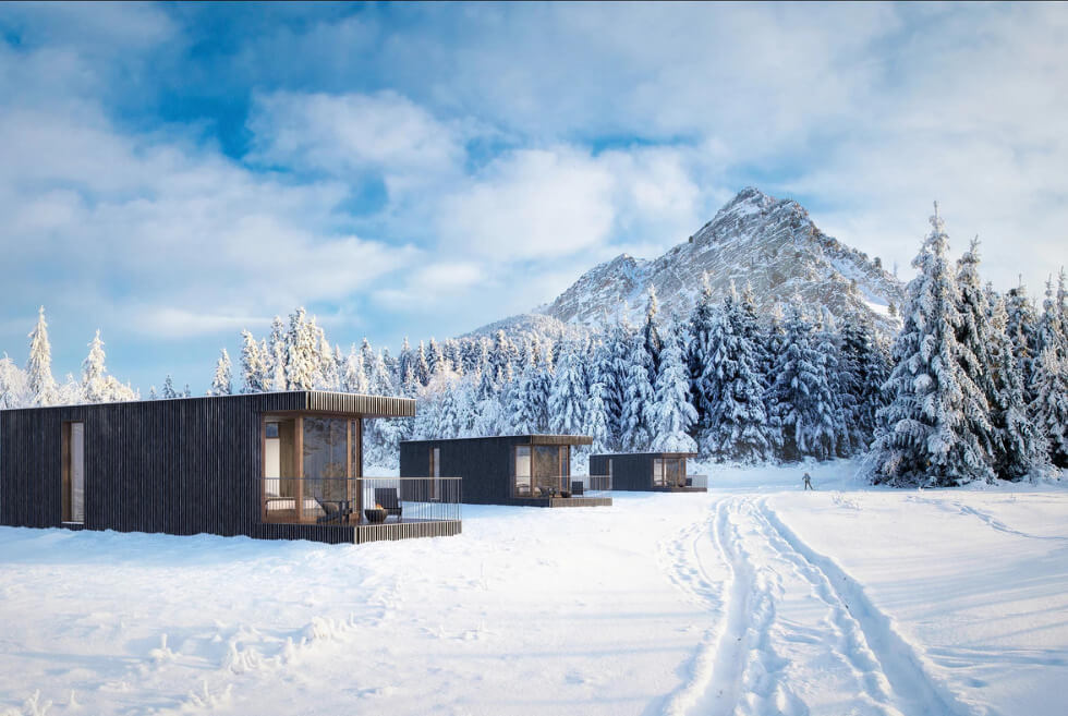 Each cabin offers approximately 400 square feet of indoor space with furnishings according to the owners’ specifications. As you can see, the manufacturer promotes these units as adaptable to the locale. This is a great approach to ensure that these do not stick out oddly from whatever the backdrop is.