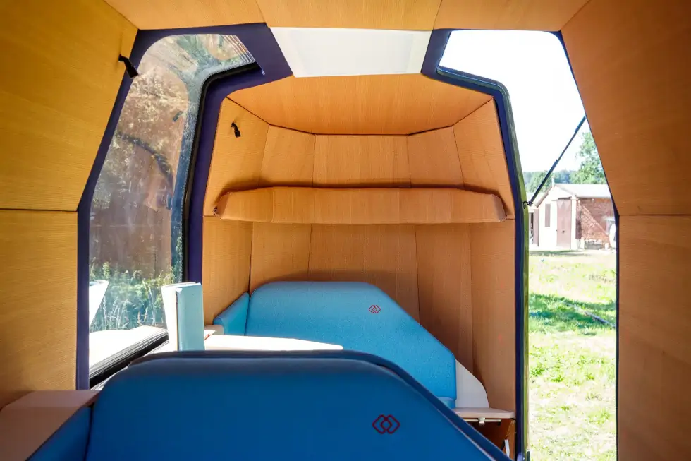 Inside the MONOCAB OWL, large windows provide adequate illumination by day and panoramic views, which exude a feeling of expansiveness. People with claustrophobia should be able to tolerate a trip or two on board. Desks are likewise integrated for convenience and productivity while on the move.