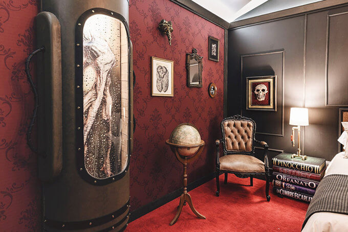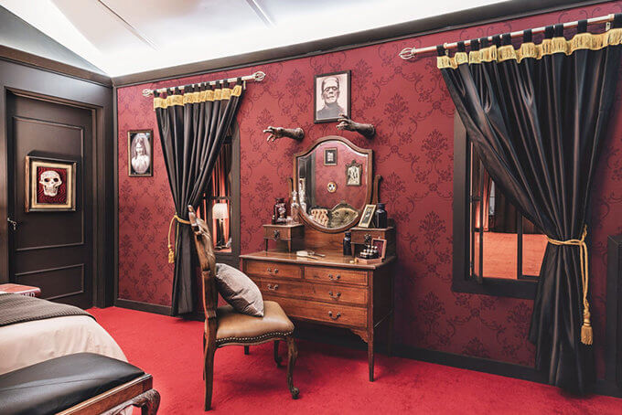 The Monster Suite looks like a fancy hotel room with classic décor. However, the props and other items that share the room with you are anything but. There an illuminated chamber that holds an unknown creature and glass jars with severed appendages. Furthermore, there’s a creepy porcelain doll in a vintage dress that might move when you least expect it. Aside from the haunting accommodations, guests get to enjoy an exclusive private tour of the exhibit at night. A stay in the Monster Suite is definitely not for the faint of heart.