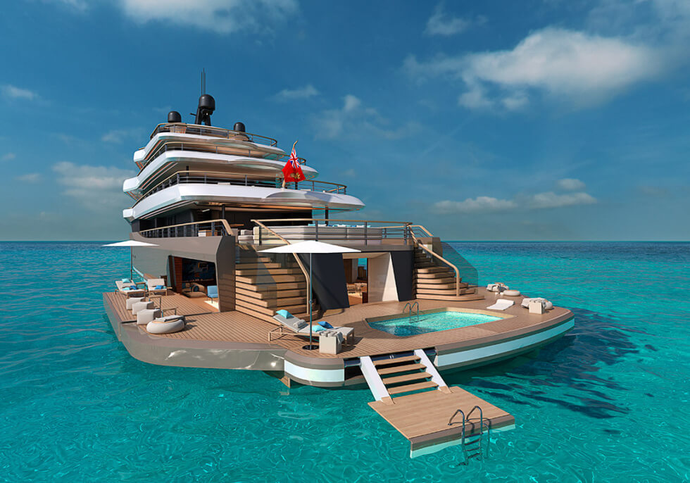 At a length of 235 feet, this is a magnificent motor yacht for anyone to have. Instead of treating the beach club as a mere afterthought, the designers are turning it into a highlight. Before we get into detail about its aft attraction, this concept was originally penned in 2018.