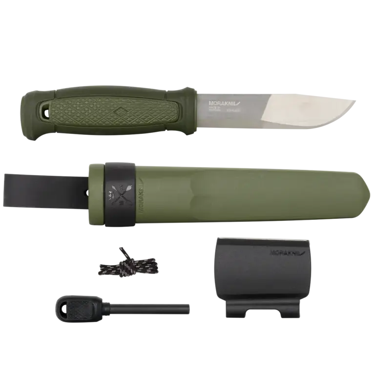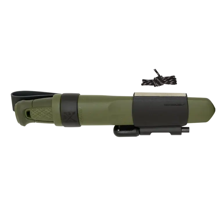 The Morakniv Kansbol with Survival Kit (S) also gives you the convenience of sharpening the blade anytime and anywhere. It has a diamond sharpener because you just never know when you may need a razor-sharp blade in the wilderness. Plus, it comes in organic colors of Green and Burnt Orange.
