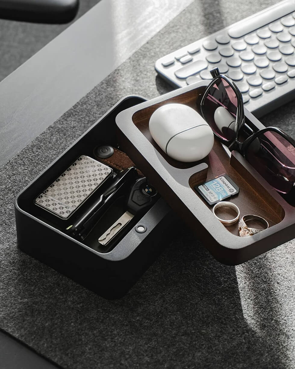 Design-wise, it may look like any typical small container. But the use of colors and materials makes it stand out on your desk, bedside table, or console table. It looks sleek, elegant, and minimalist.