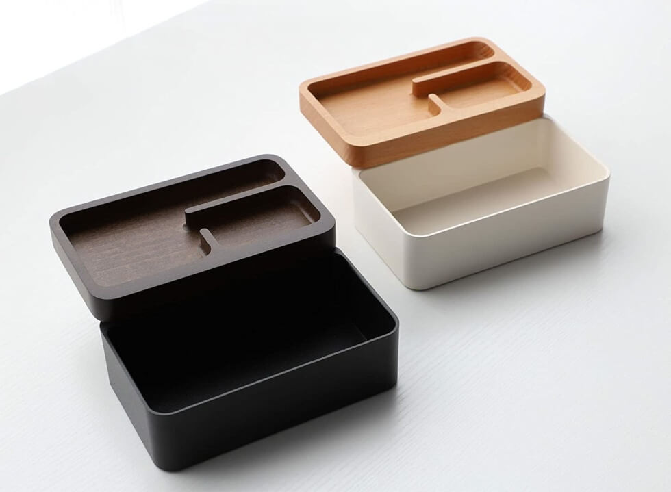 The Revov Tray Box comprises a top tray made from Beech Wood. Wood naturally gives a soft and warm visual while making the product durable. Meanwhile, the bottom box is made from milled aluminum. It’s a contrast of materials yet they complement each other. The smooth and cold texture of the aluminum goes well with the pop of wood grains.
