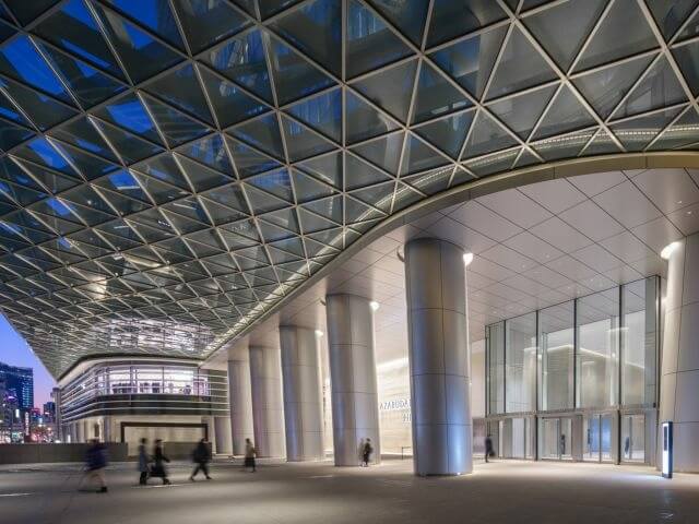 The Mori JP Tower was built according to the high seismicity of Tokyo. It utilized high-strength steel and concrete and active mass dampers so it can withstand up to 9 moment magnitude earthquakes. Moreover, the entire development within Azabudai Hills prioritizes both community and environmental sustainability. It is powered by 100% renewable energy and recycles and reuses rainwater storage as well as reclaimed sewage heating systems to conserve water and reduce CO2 emissions.