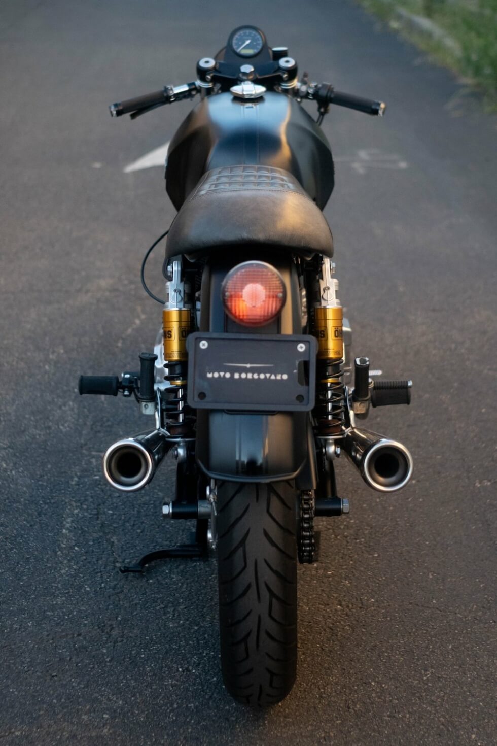 The frame now flaunts a matte black powder coat which mimics the enamel black chassis of retro motorcycles. Its battery box now sits under the tank via a custom mount. Most of the components are in a blackout theme. The rims are from Woody’s Wheel Works, while Via Meccania upholsters the saddle. This 1979 Ducati 900 GTS certainly captures the charm of its era.