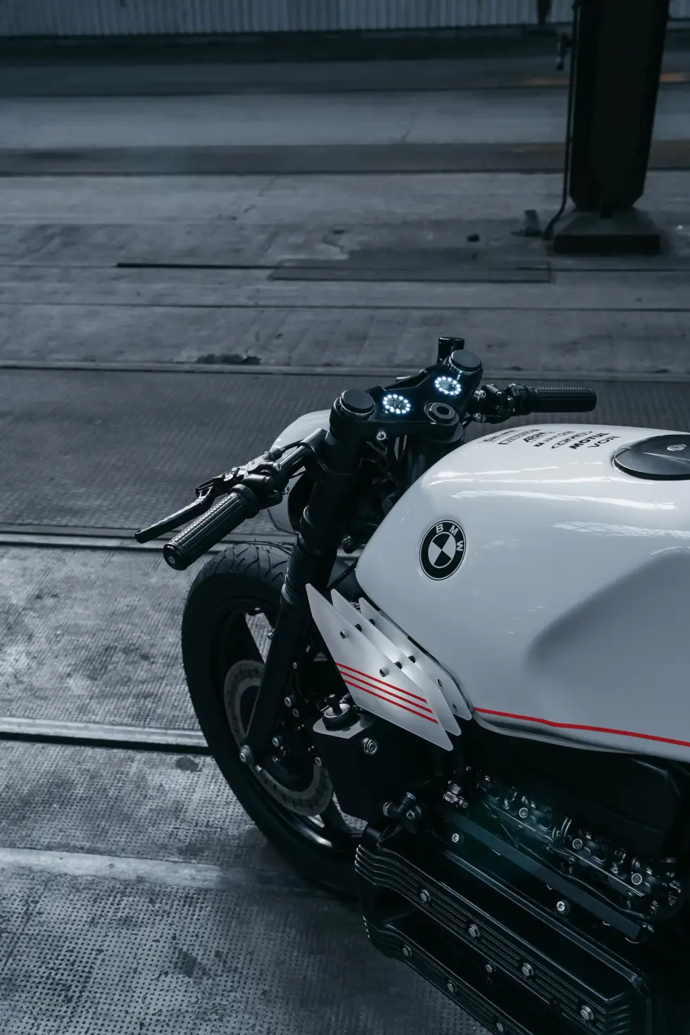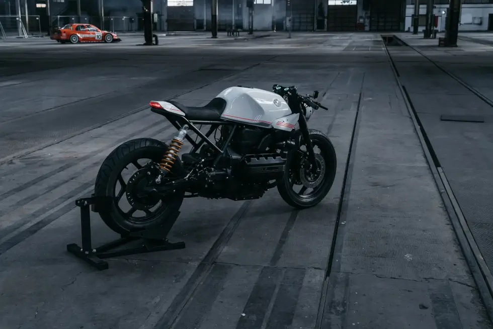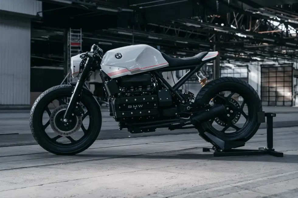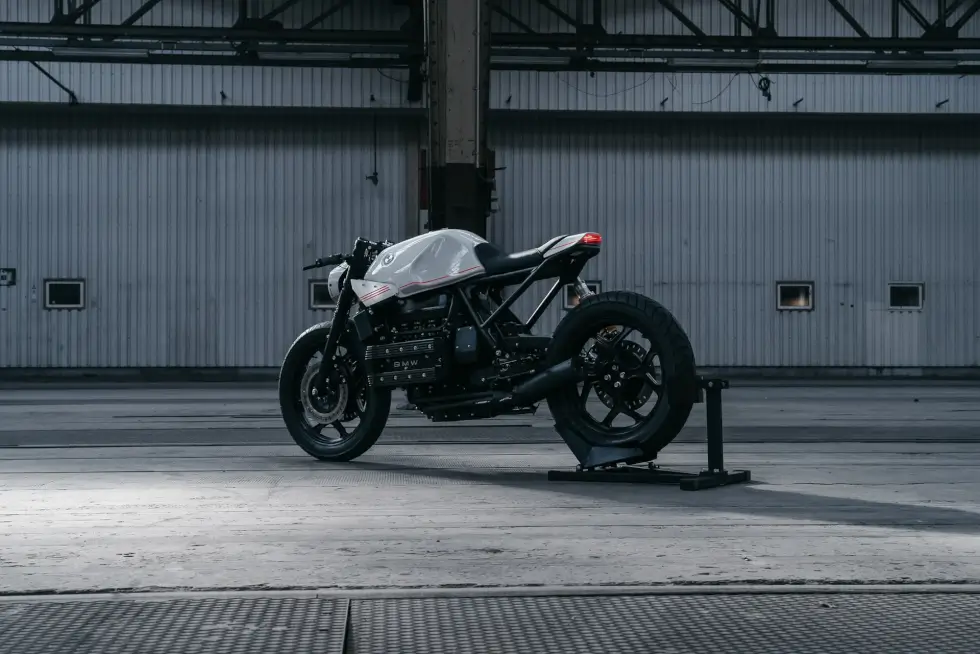 The donor platform is what many in the bike customization scene affectionally call the “Flying Brick.” This comes from the unique engine placement which most likens to that of automobiles. The 1983 BMW K100 now sports a combination of modern and futuristic elements with a muscular stance.