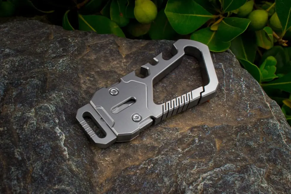 This innovative multi-function keychain features a unique one-piece spring design that easily clips onto belt loops, hooking points, backpacks straps, mountaineering bag, and more. It uses metal that is stronger than ordinary spring memory metal and not easily deformed. Its firm locking mechanism is safe and secure with a fine to 0.02mm inner surface that is very smooth and more elastic when rebounding to enable effortless hooking. It also has a quick-release mechanism for easy on-the-job access.