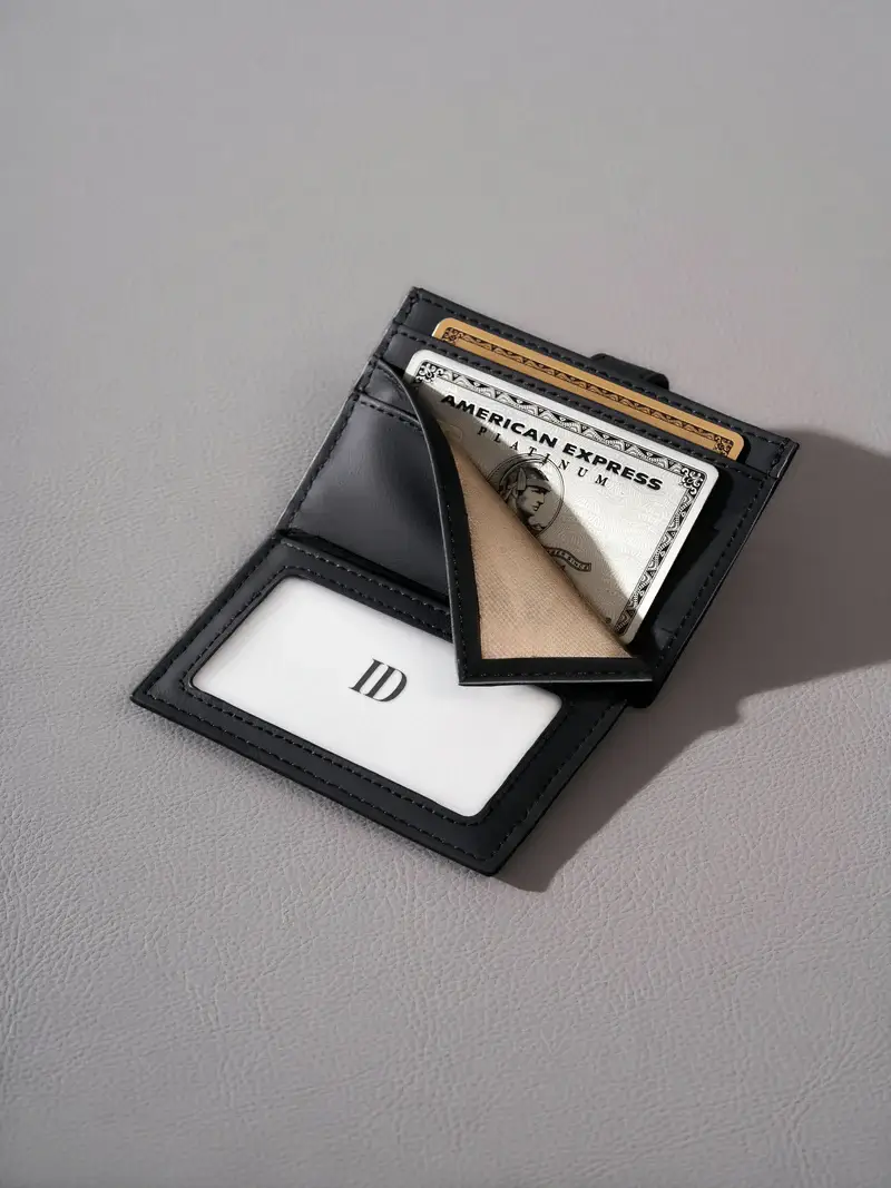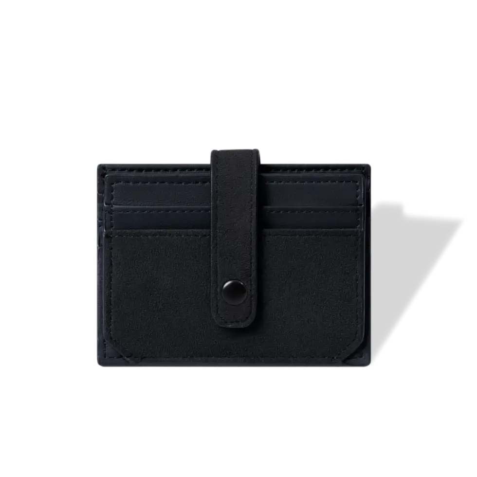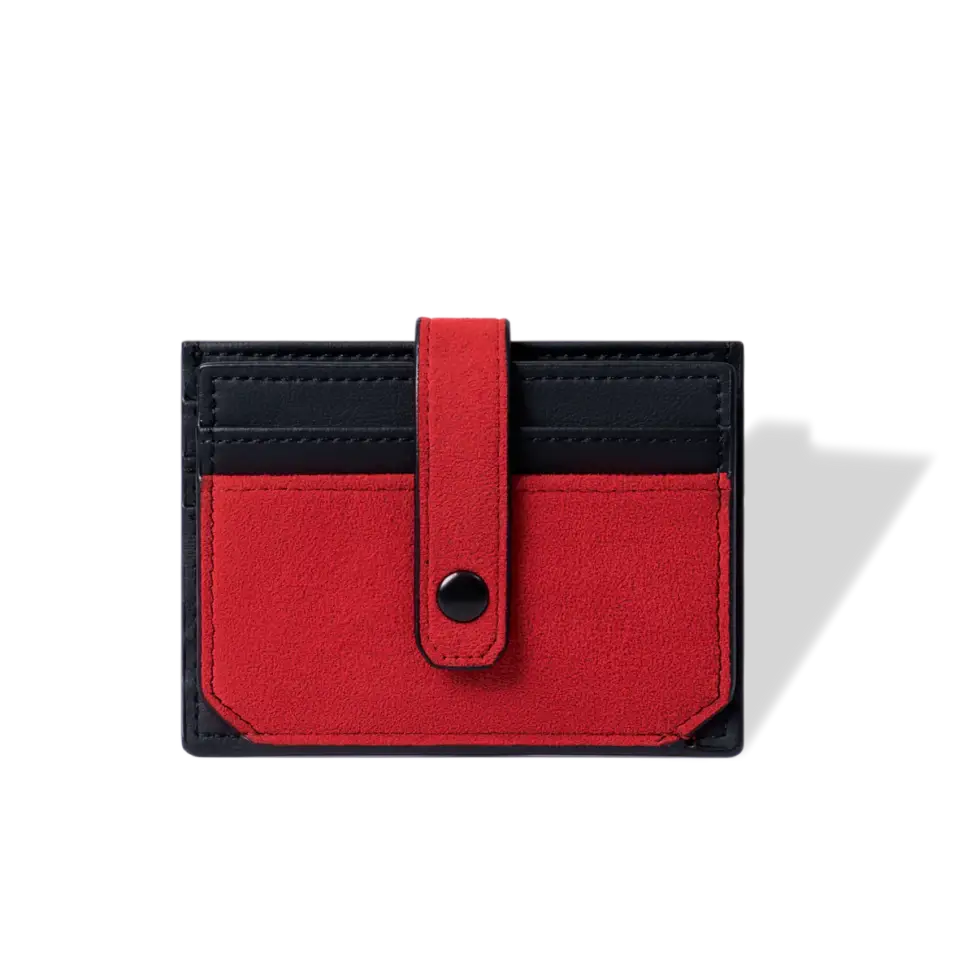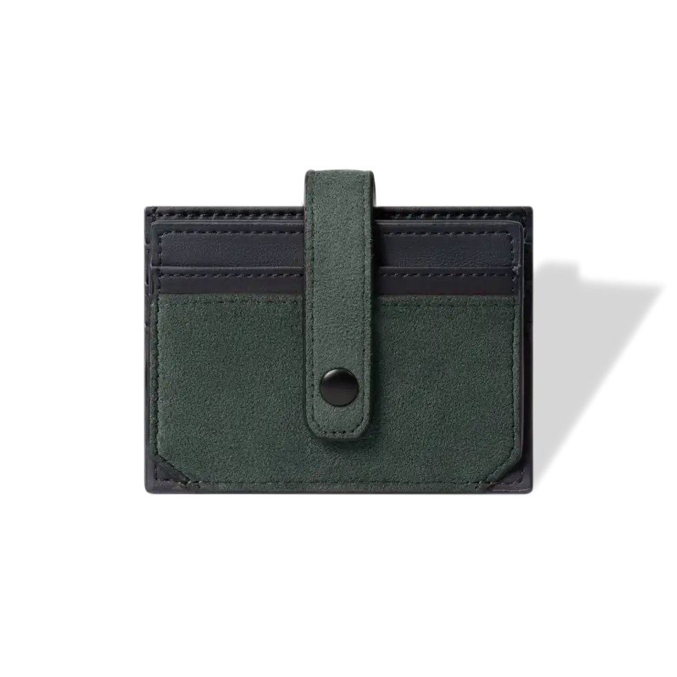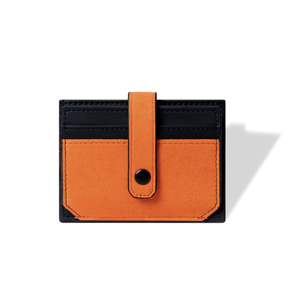 The MVST RFID-Blocking Alcantara Slim Wallet can hold five credit cards, one ID, and some cash. Yet, it maintains a sleek profile and lays flat in your pocket for a comfortable carry. It is available in four colors to suit your preference including Green, Black, Red, and Orange.