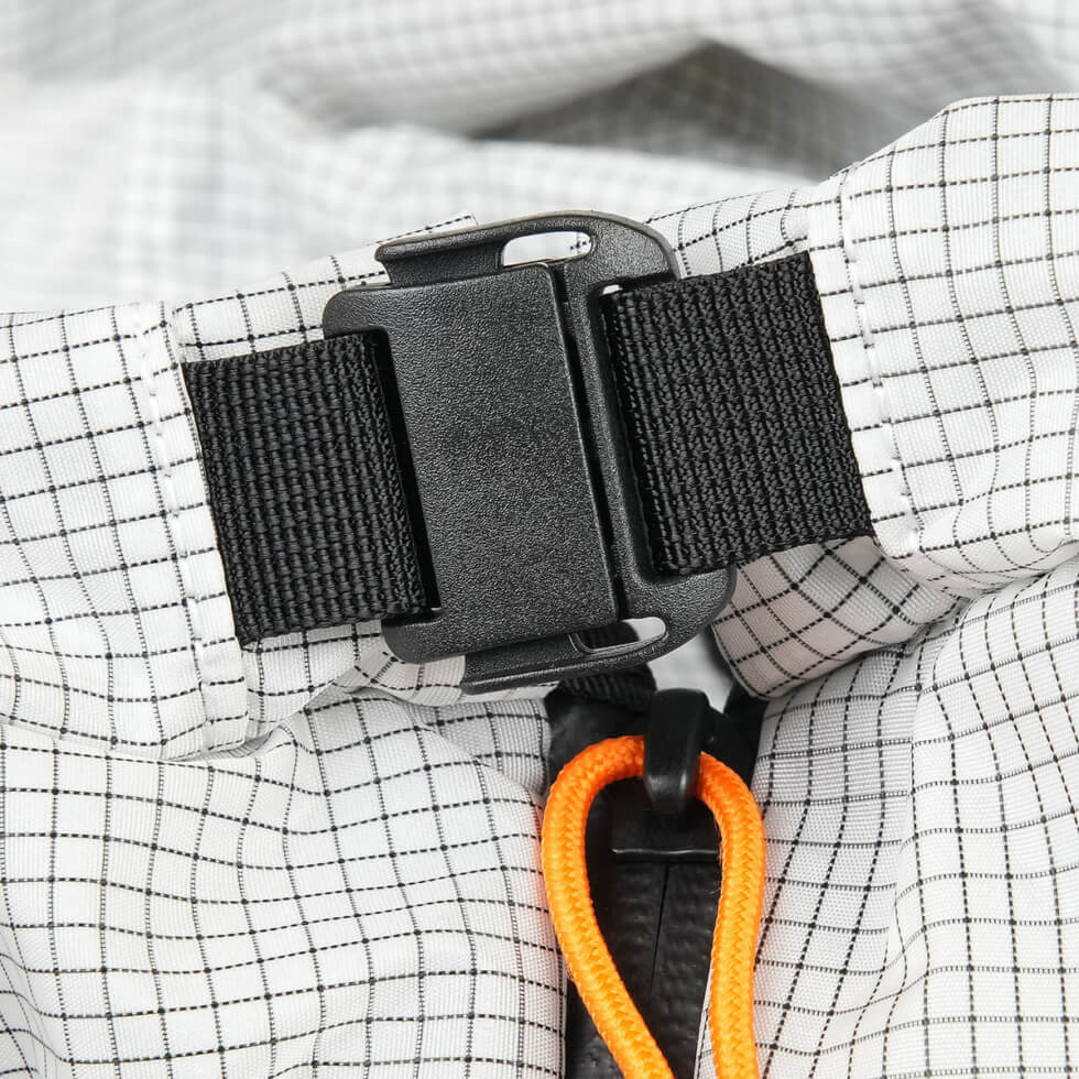 For starters, this bag is built light (just 1.6kg) yet tough from Technical Ultra-PE Birdseye (high-tech nylon) along with recycled 100D Robic Ripstop fabric and water-resistant YKK zippers. It easily adapts to your load with removable 7000 Series, which is an aerospace aluminum frame that brings just the right load-bearing support. It works together with an adjustable lightweight harnessing to make hikes much more comfortable.