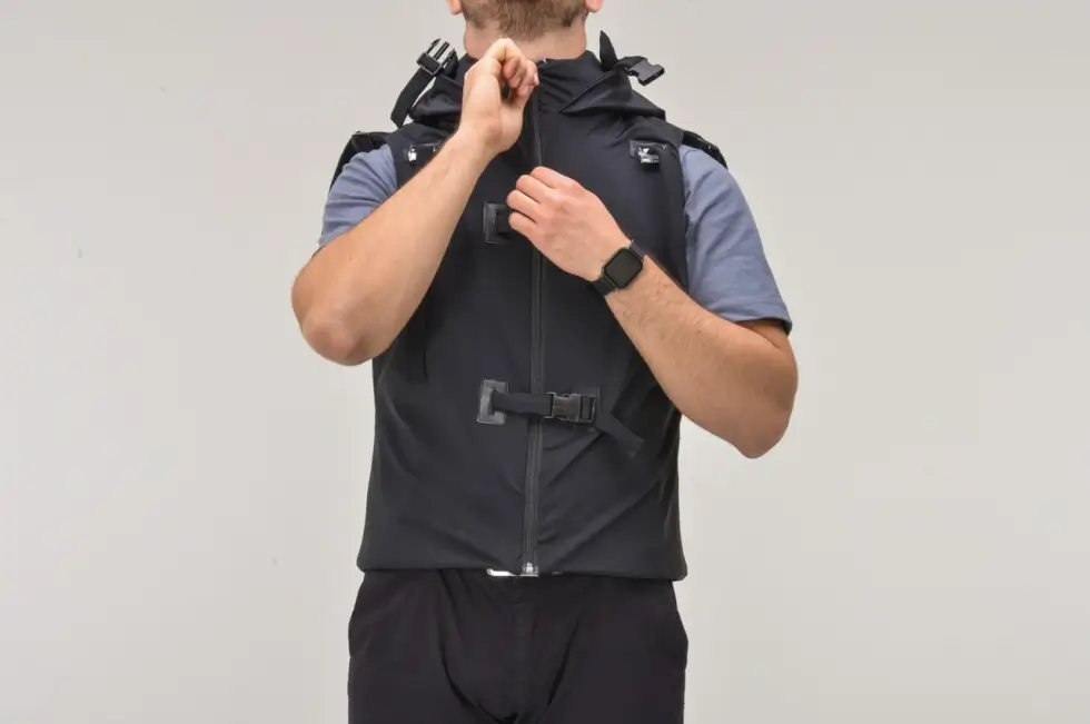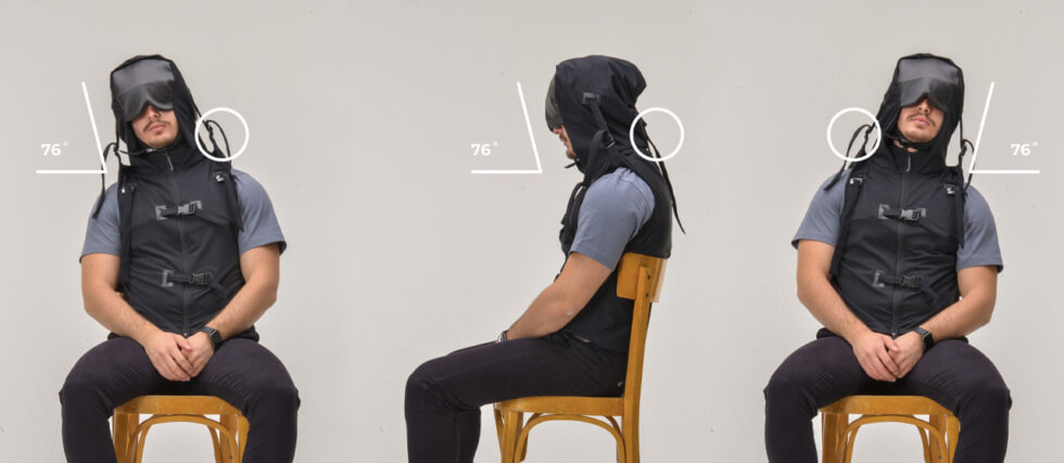 It’s name is very self-explanatory, (Nap On The Way), but lets take a look at what makes this an ingenious solution in terms of naps during commutes. This is a sleeveless jacket with a primary objective to isolate the user from external light and provide an ideal sleeping position even when seated.