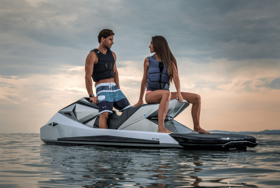 The hull of the Electrojet GT95 is carbon fiber with front and rear anchor points. You can find a large swim platform on its rear just in case you want to dive in for a swim. Propulsion comes from a 24 kWh battery that powers its 95-horsepower electric motor. A full charge should last around 2 hours depending on the driving modes: Eco, Cruise, and Sport. Like its predecessor, a 7-inch customizable display provides all the essential data so you can enjoy a smooth and fun emission-free ride.