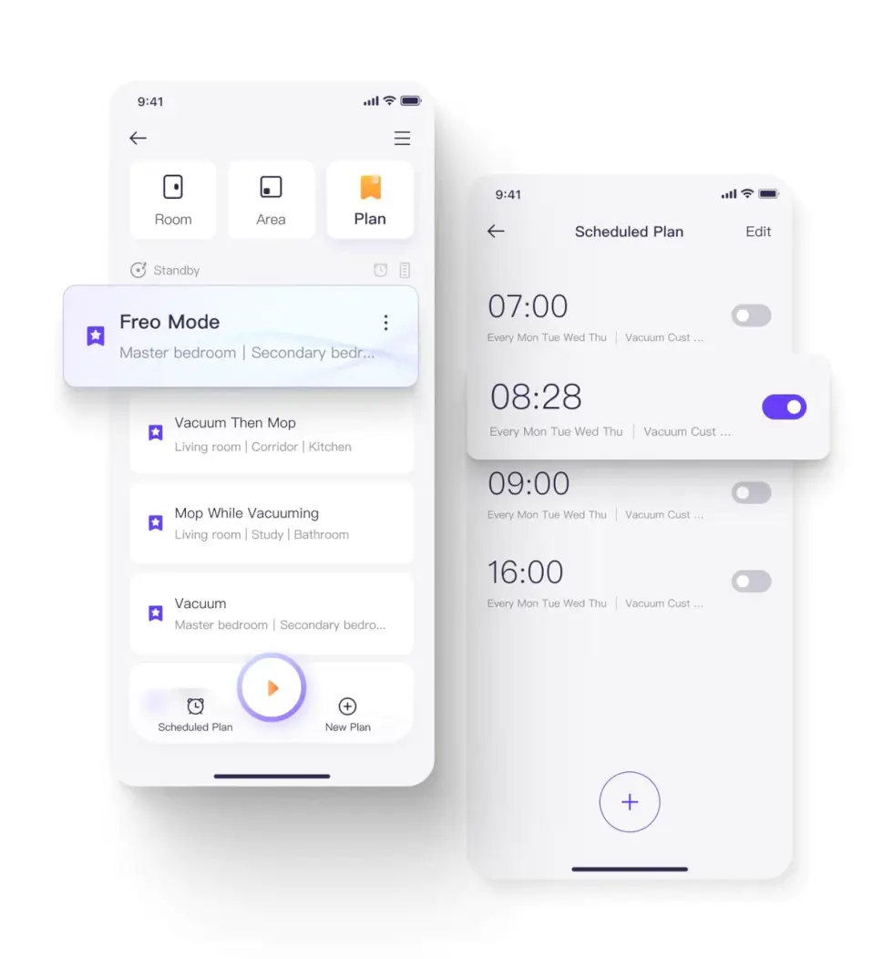 This hybrid machine is equipped with DirtSense technology that senses how dirty a room is and then determines if it needs another more cleaning or not until it has thoroughly cleaned and mopped the floor. Its route planning algorithm allows to “vacuum more times” or “mop more times” on the overlapping area in every cleaning mode.
