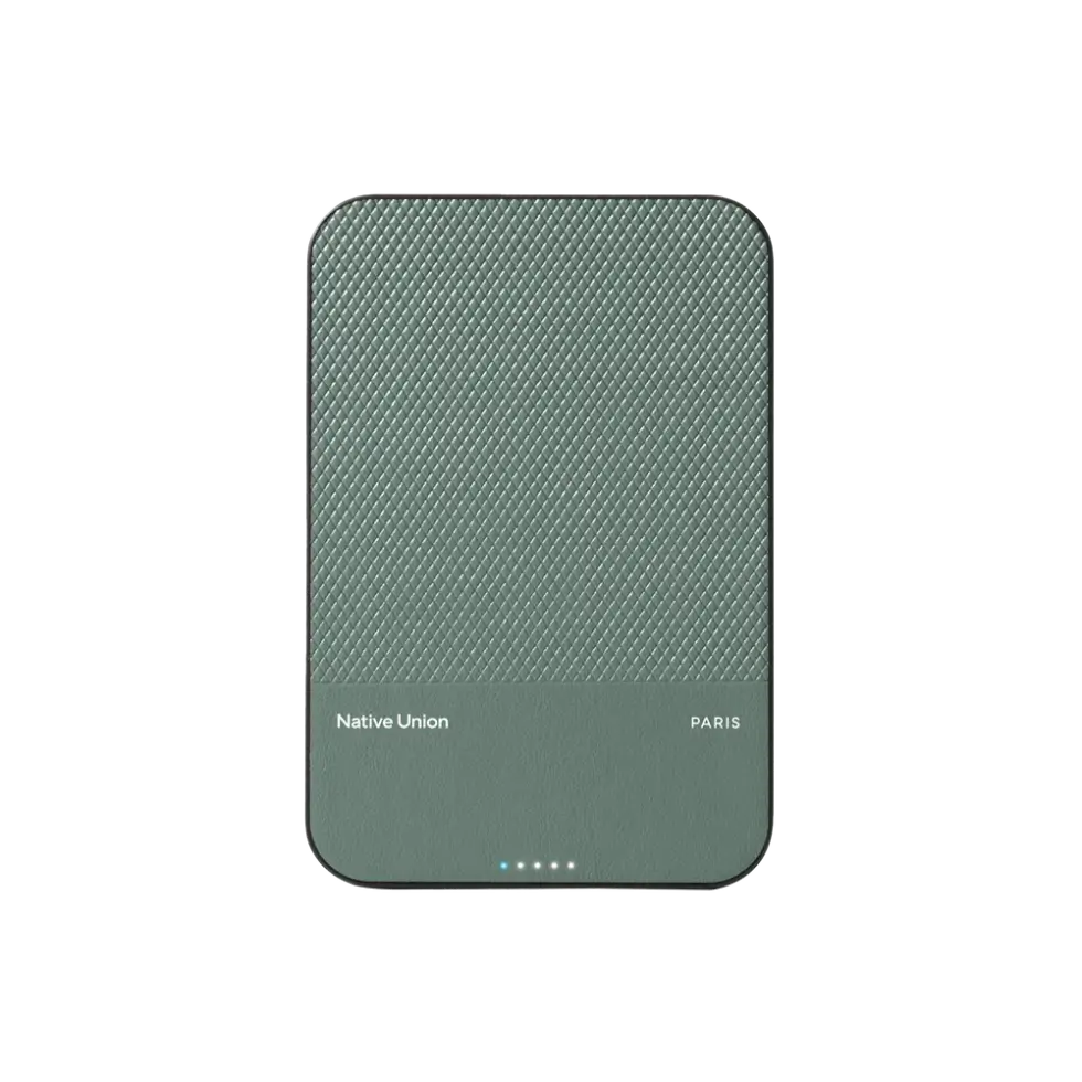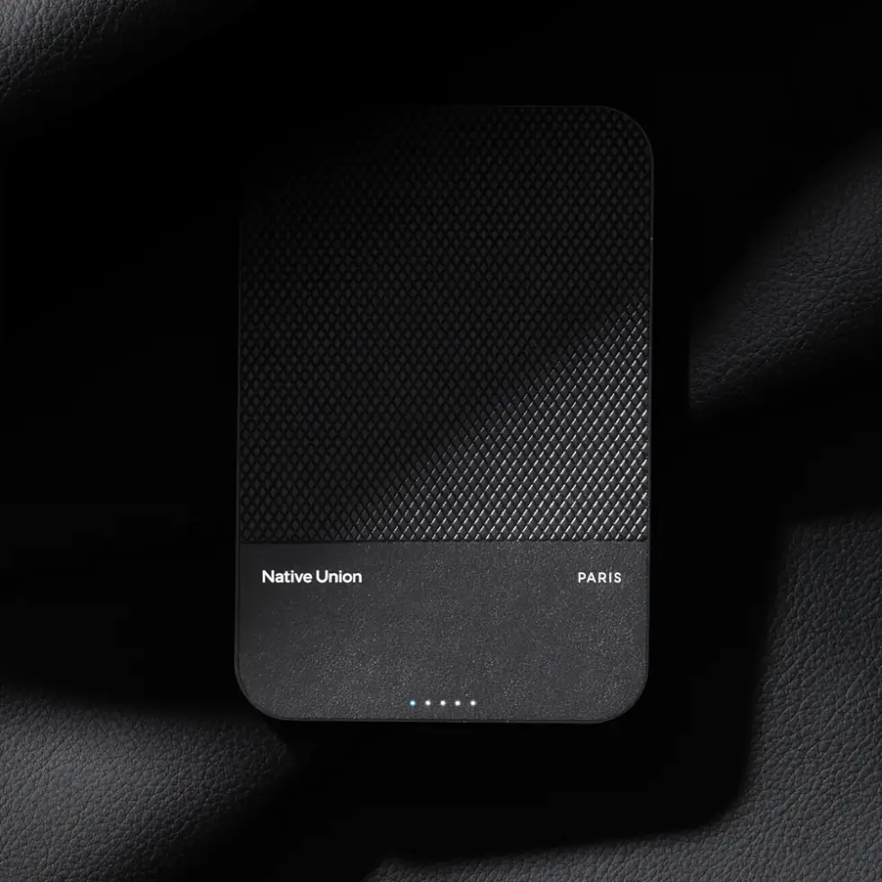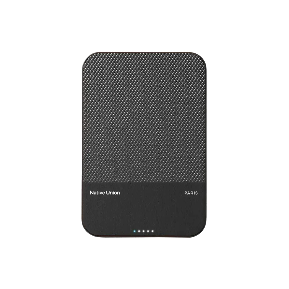 Native Union equips this portable power platform with a 5,000 mAh battery, enough to fully recharge an iPhone 15 Pro. Technical specifications detail a maximum output of 15W for non-Apple devices compatible with the Qi wireless standard. It can recharge via a USB-C to USB-C cable (provided), for up to 20W Power Delivery.