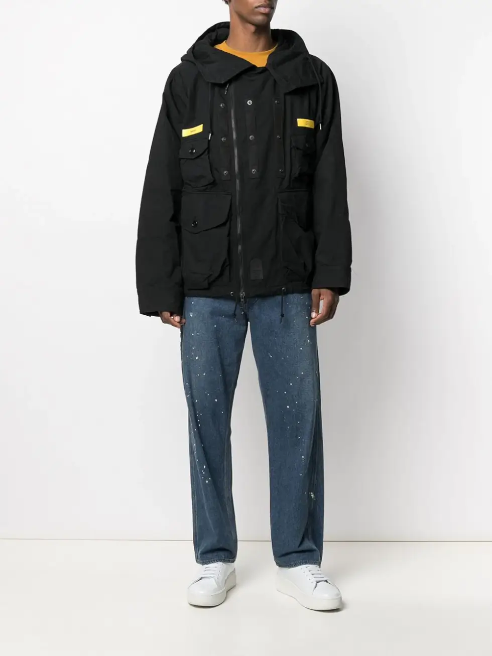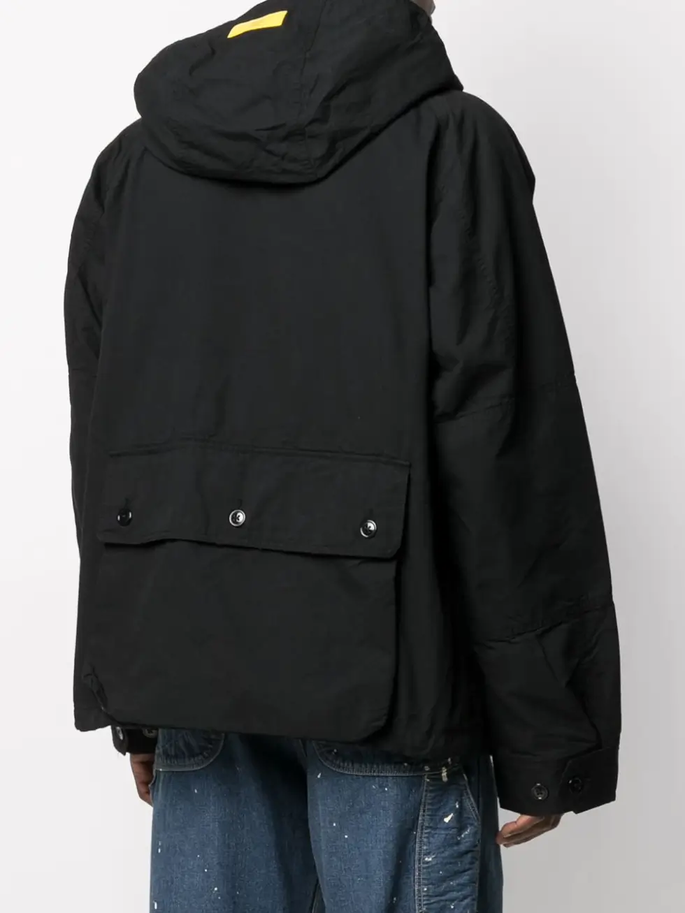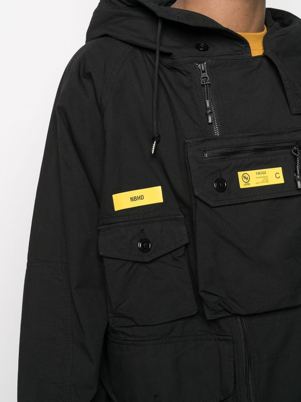 For this particular outerwear from Neighborhood, you have a composition of pure cotton lining and a blend of 53% cotton and 47% nylon for the outer to make it breathable and comfortable to wear. It has the brand’s signature logo patch to the front and ideal designs to keep you warm. These include long sleeves and a drawstring hood to keep your neck warm. The Neighborhood Tactical Smock Hooded Jacket would look good paired with a shirt as it would make great outerwear.
